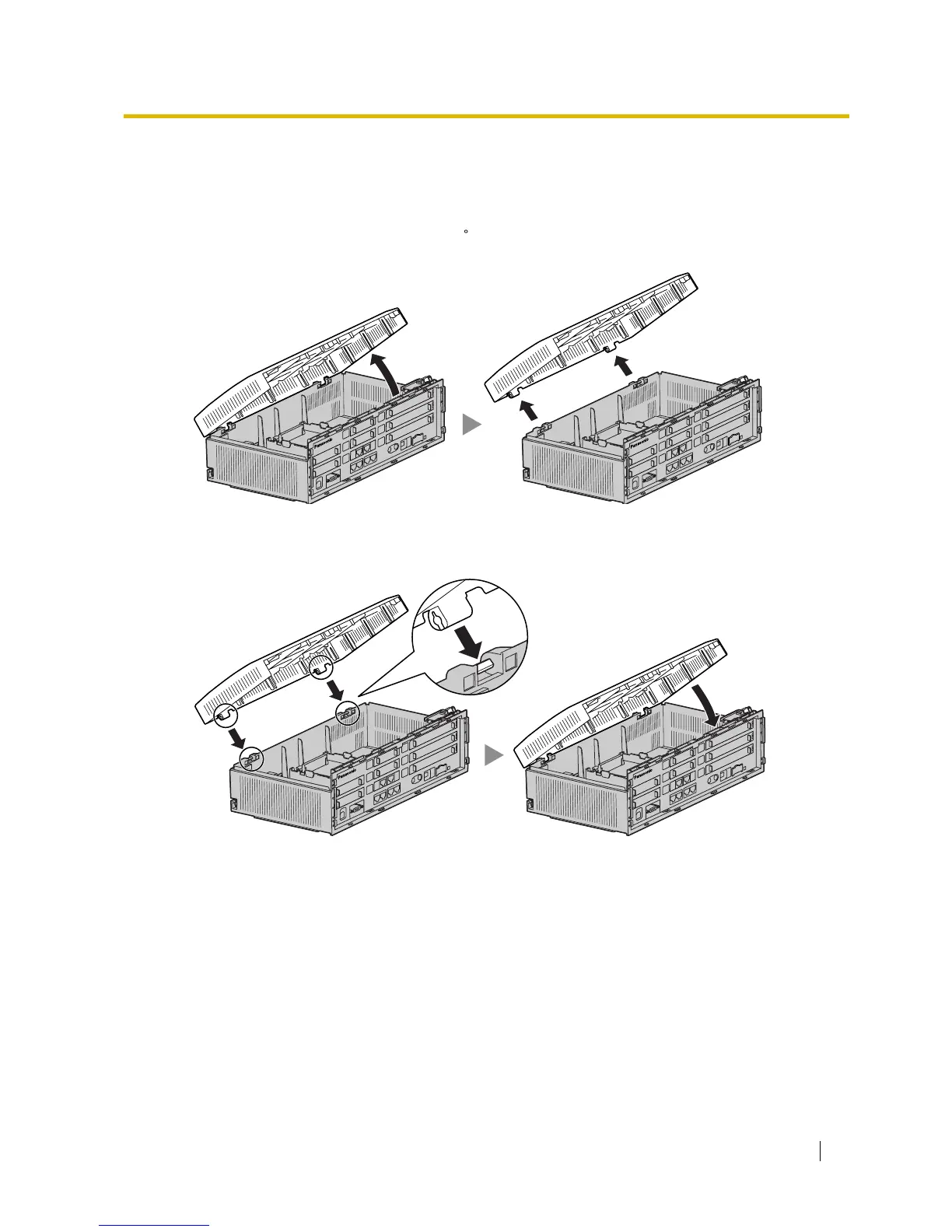 Fit the front cover to the main unit as shown below, and then close the front cover.