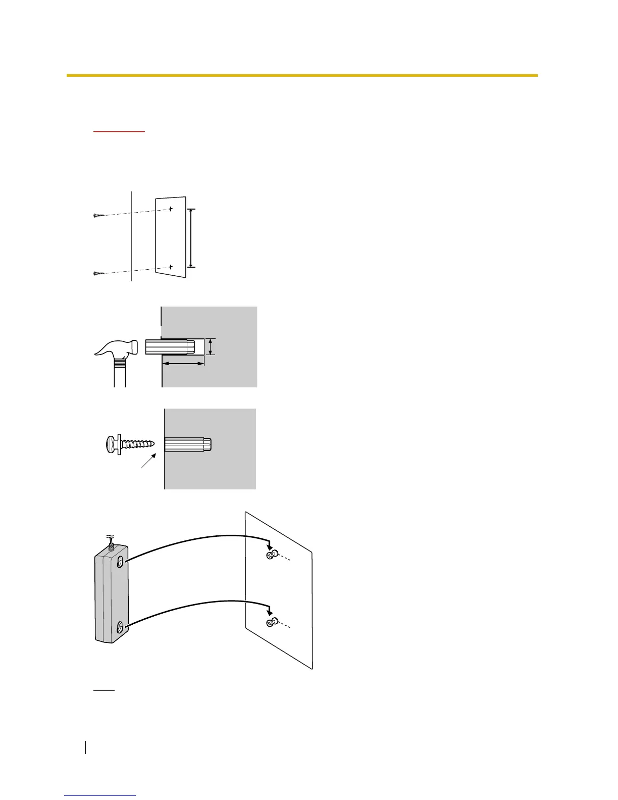 Drive mounting screws into the wall. Be careful to avoid touching any metal laths, wire laths or metal