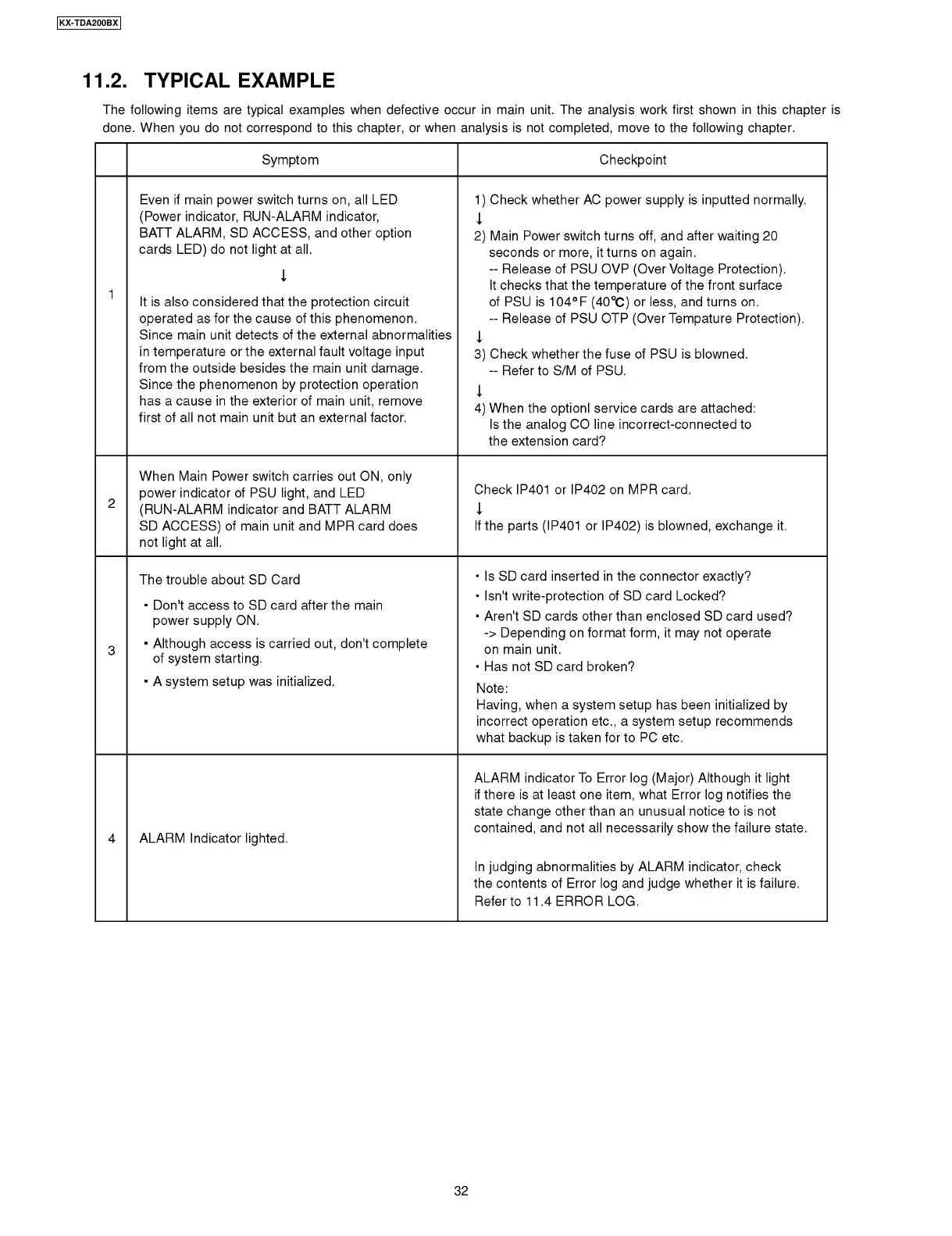 Panasonic KX-TDA200BX - Typical Troubleshooting Examples