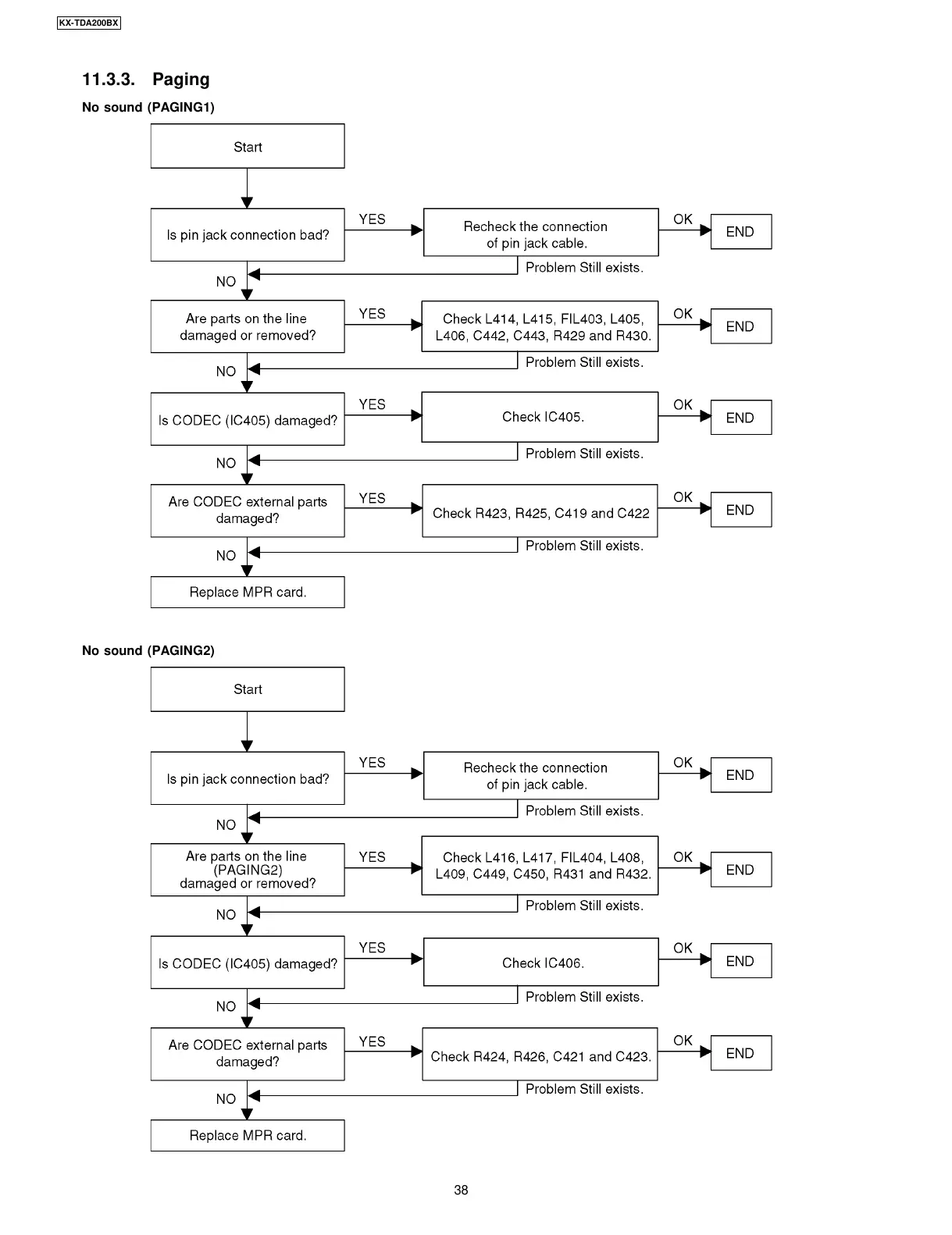 Panasonic KX-TDA200BX - Paging Troubleshooting; Paging No Sound (PAGING1) Troubleshooting; Paging No Sound (PAGING2) Troubleshooting