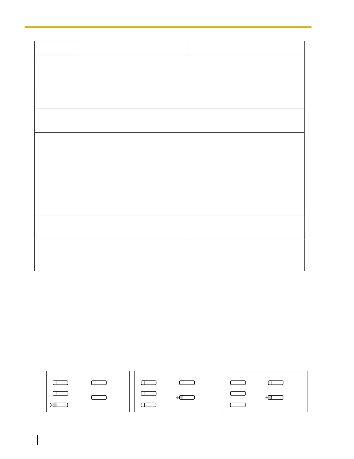 The following example shows the LED patterns of the PDN and SDN buttons of each extension and how calls