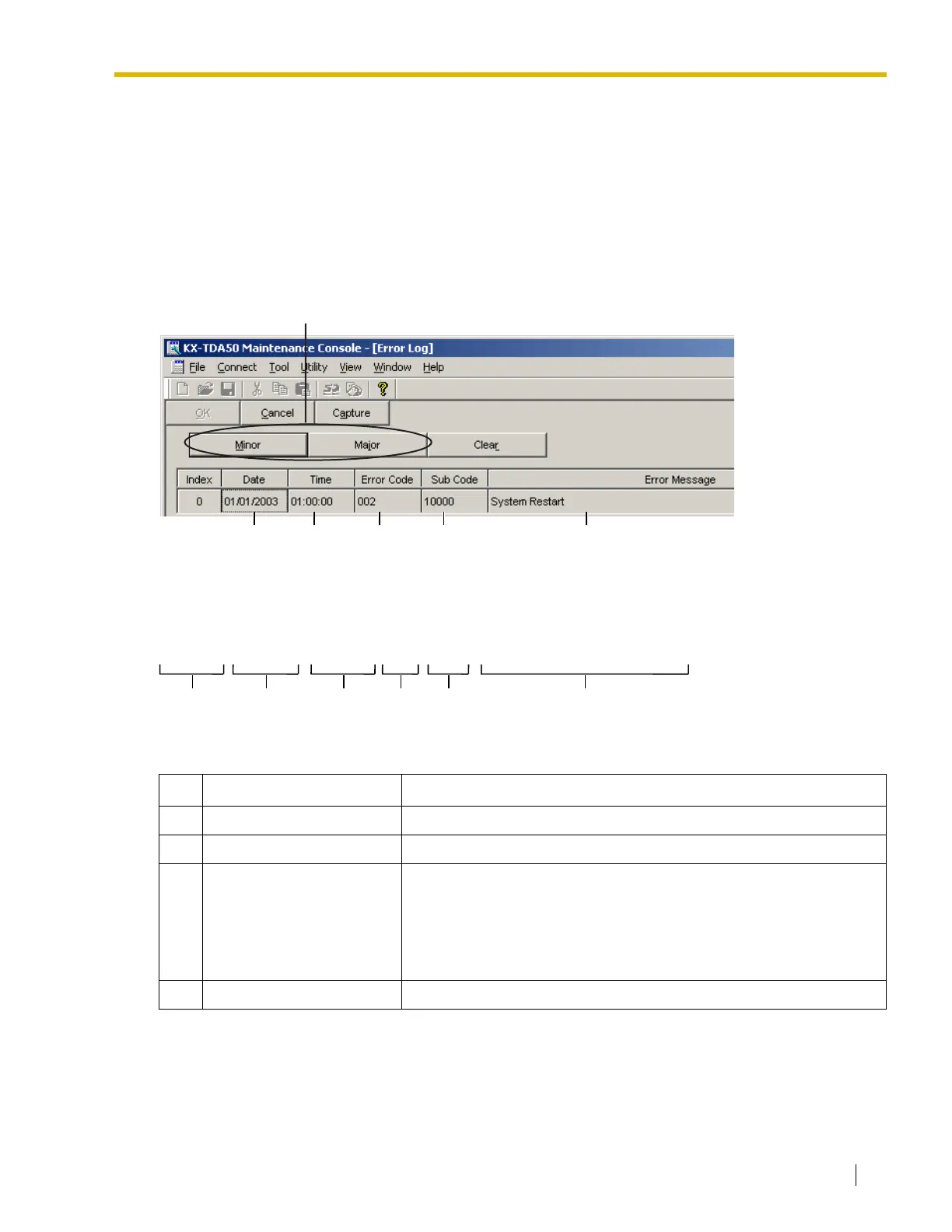 Below is the display format of the error log. To see the error log using the KX-TDA50 Maintenance Console,