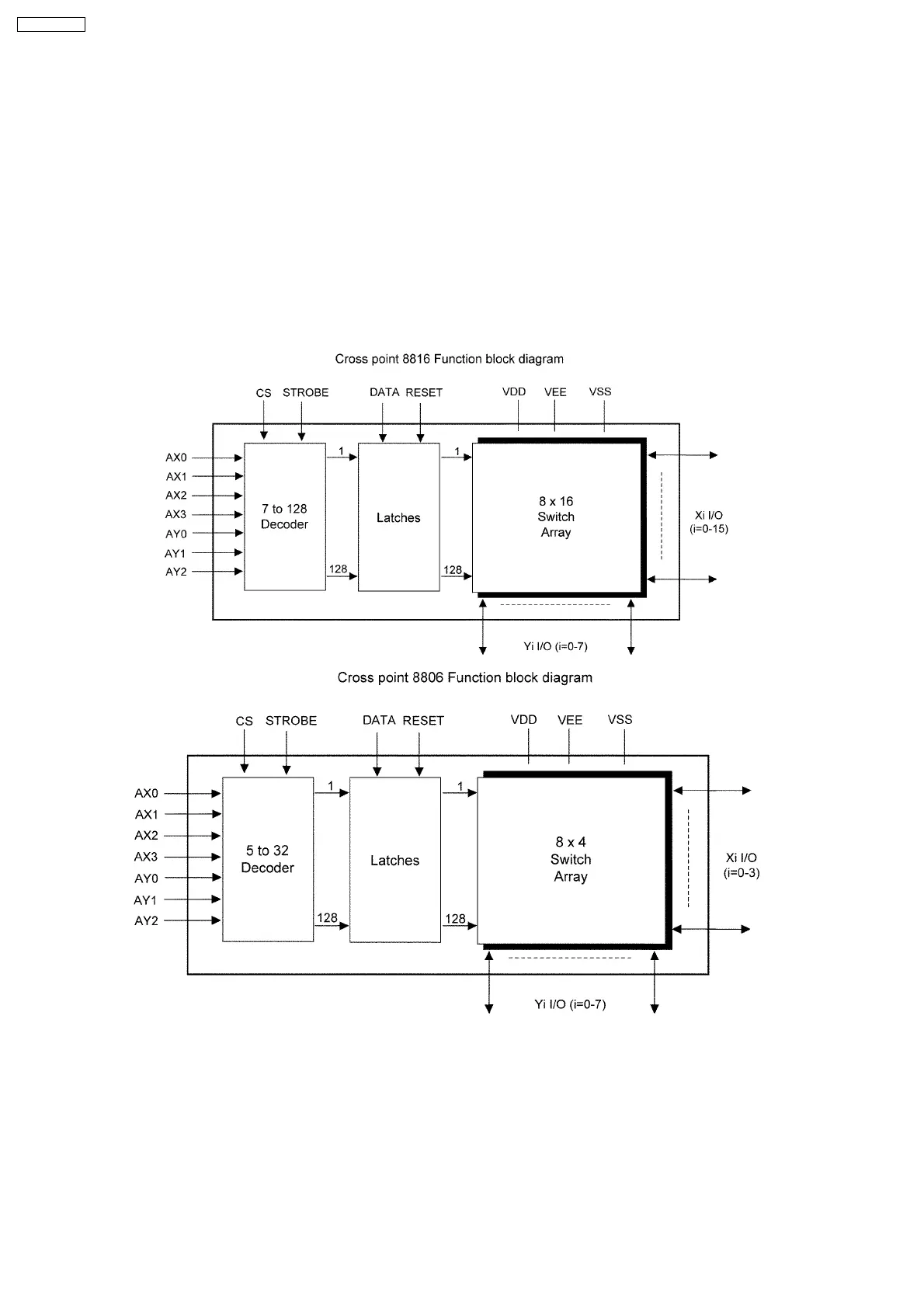 The cross point SW´s (IC602, IC603) contain 4X8 array of cross point switches along with a 5 to 32 line decoder and latch