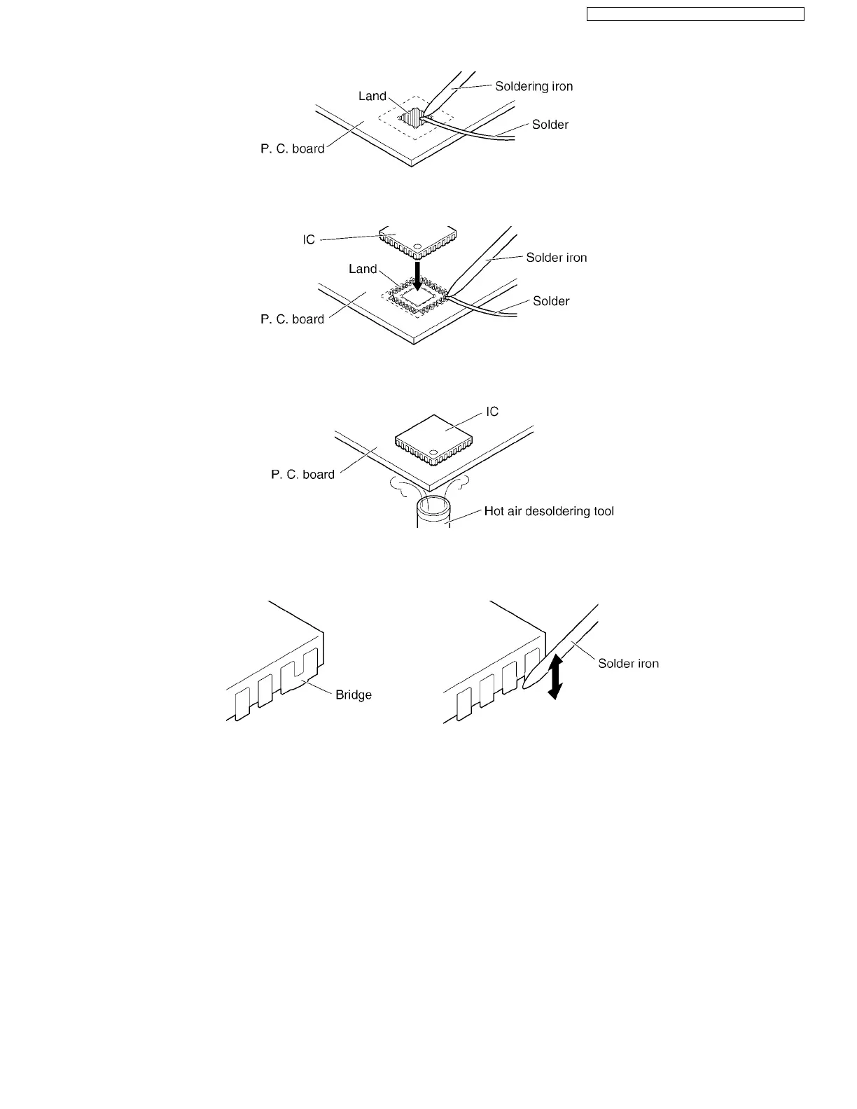 When a Solder Bridge is found after soldering the bottom of the IC, remove it with a soldering iron.
