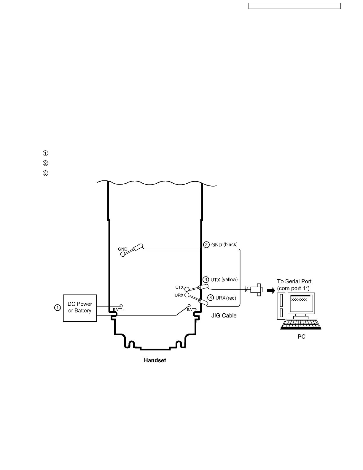 Connect the DC Power or Battery to BATT+ and BATT- (Handset).