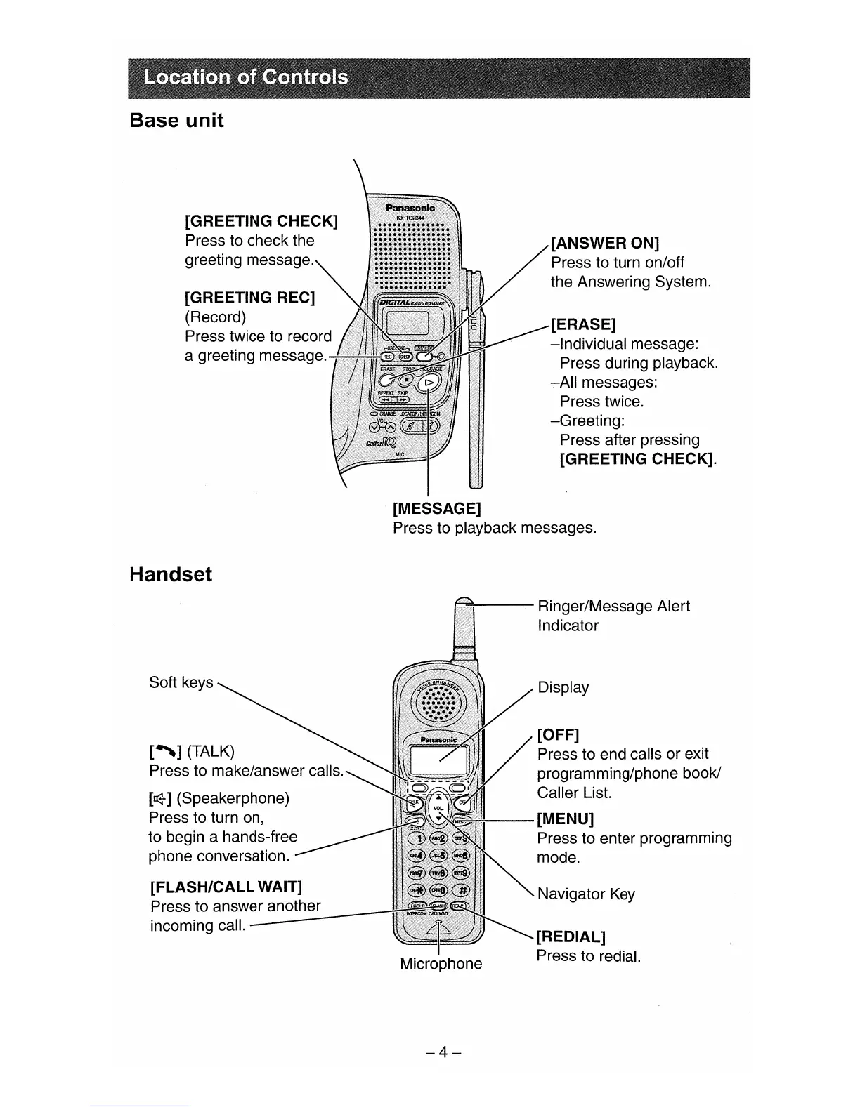 Panasonic KX-TG2344 - Product Controls and Overview; Base and Handset Control Identification