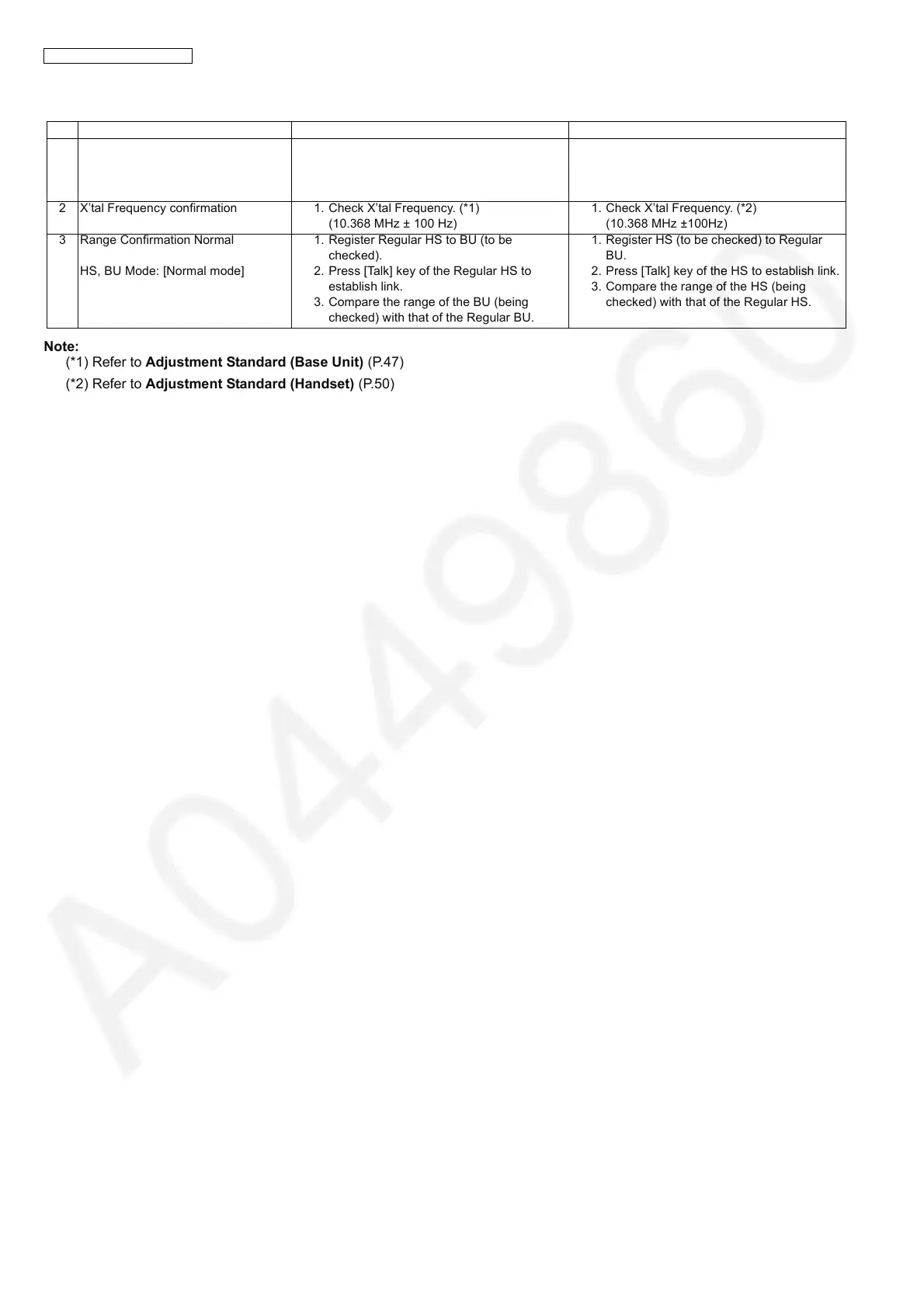 (*2) Refer to Adjustment Standard (Handset) (P.50)
