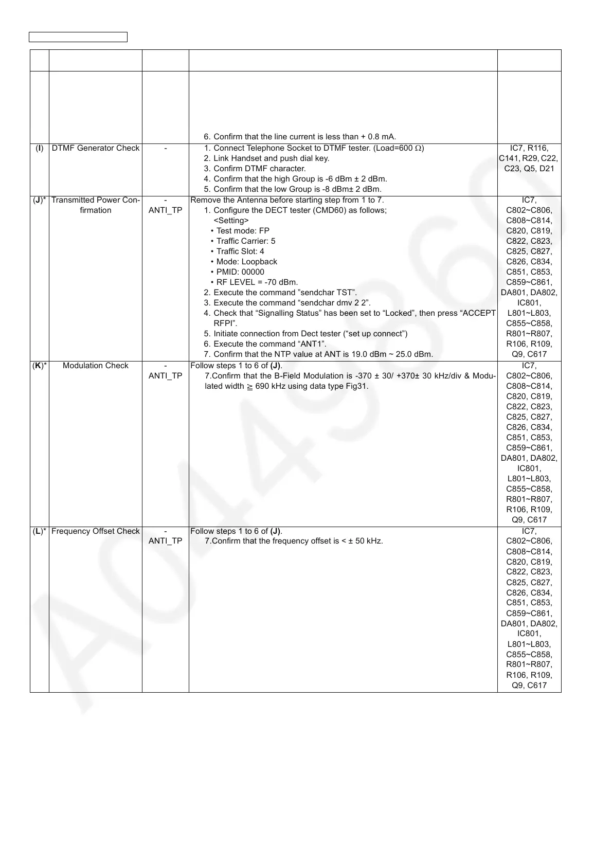 (I) DTMF Generator Check - 1. Connect Telephone Socket to DTMF tester. (Load=600 Ω)