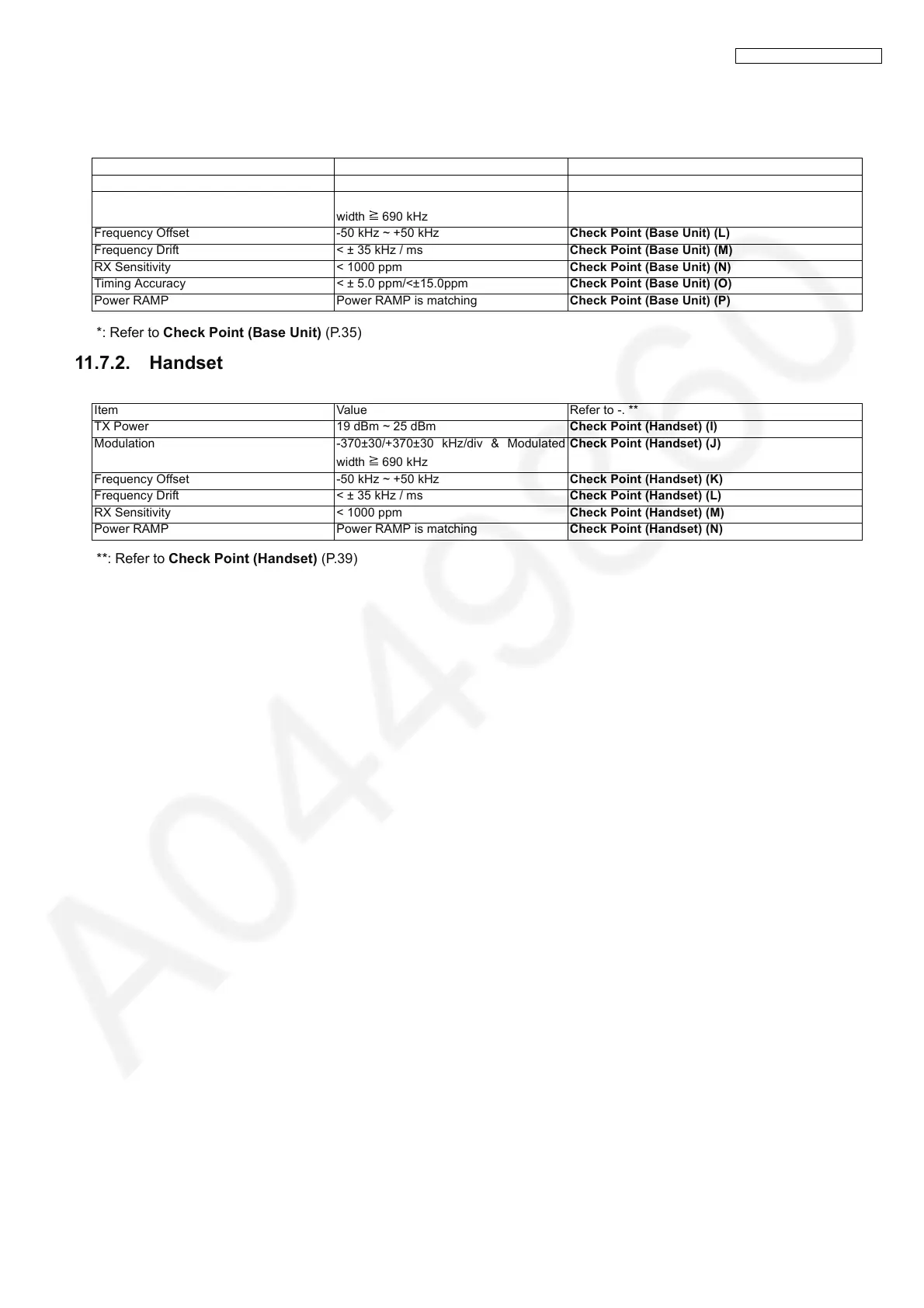 Frequency Offset -50 kHz ~ +50 kHz Check Point (Handset) (K)
