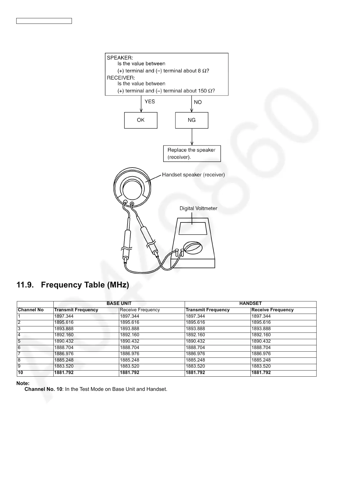 Channel No. 10: In the Test Mode on Base Unit and Handset.