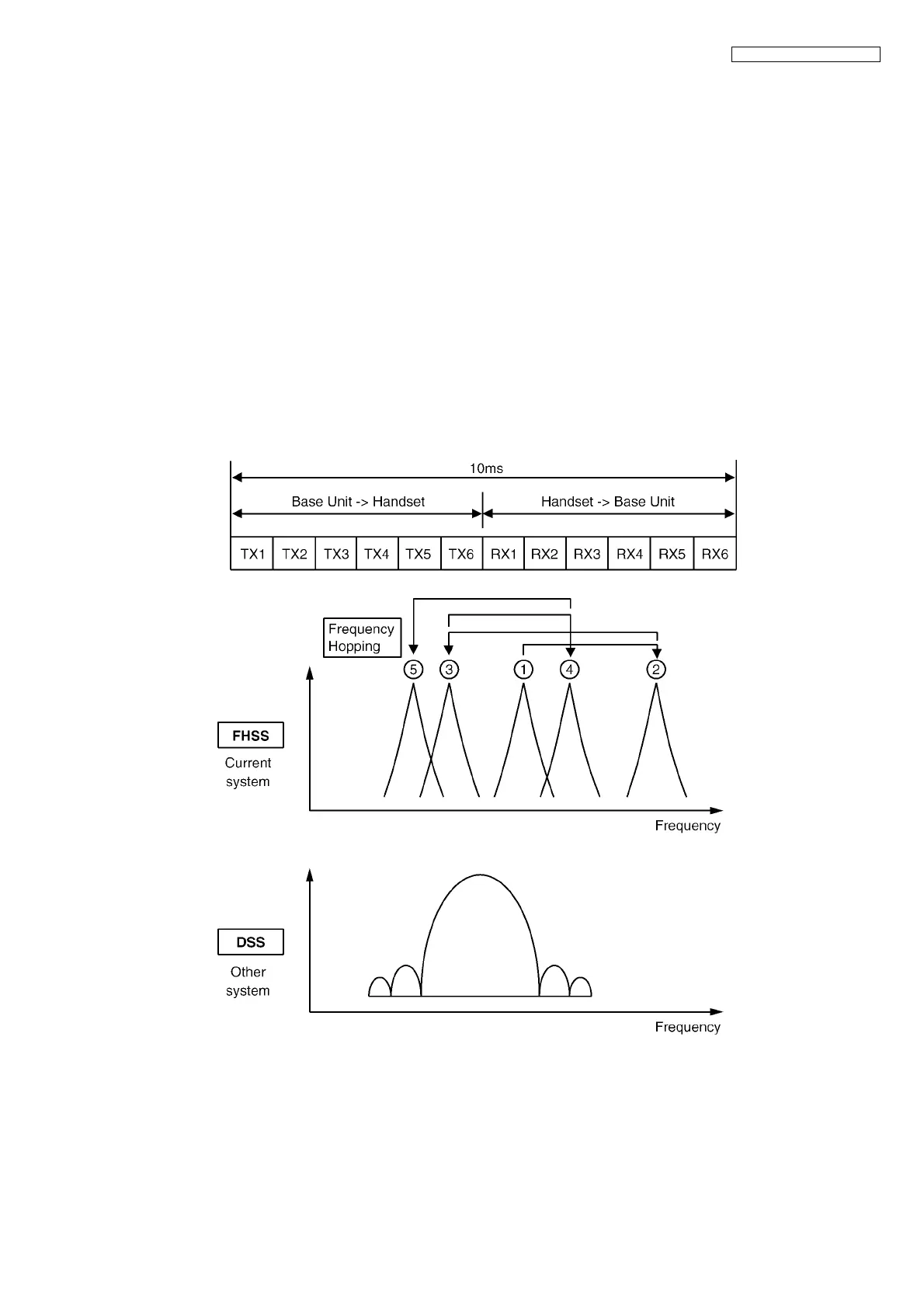tion of RX/TX frequency data is shown below. It consists of 6 slots from the Base Unit to the Cordless Handset, and 6 slots from