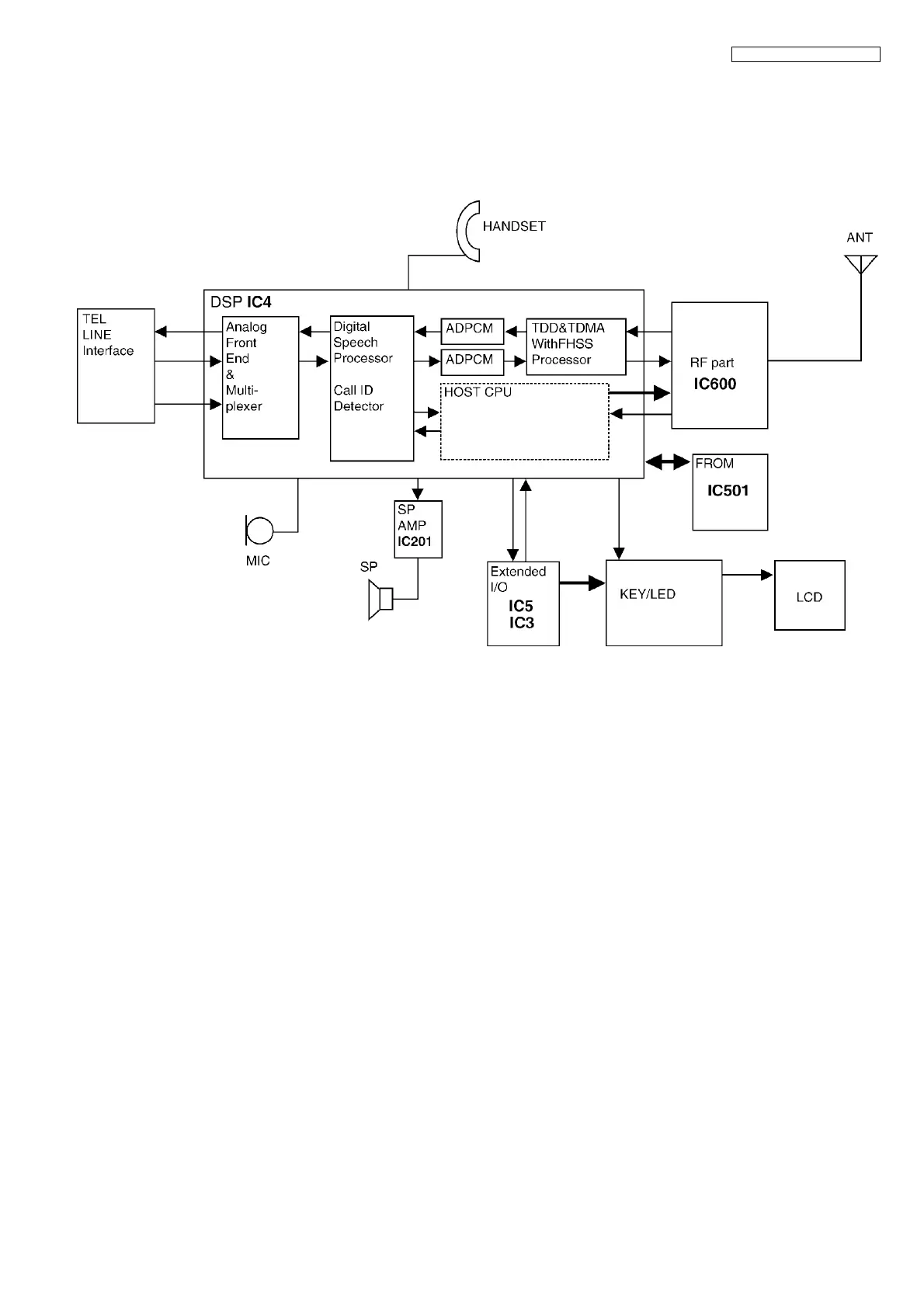 The voice signal from telephone line is transmitted to the speaker or the voice signal from speakerphone microphone is transmitted