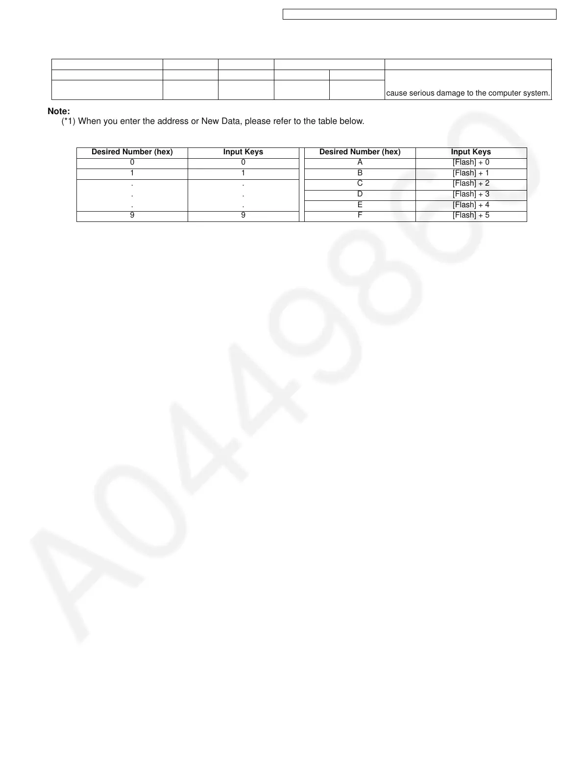Desired Number (hex) Input Keys Desired Number (hex) Input Keys