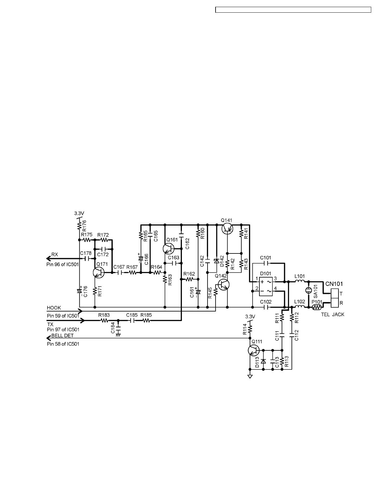 When the CPU (DSP) detects a ring signal, Q141 turns on, thus providing an off-hook condition (active DC current flow through