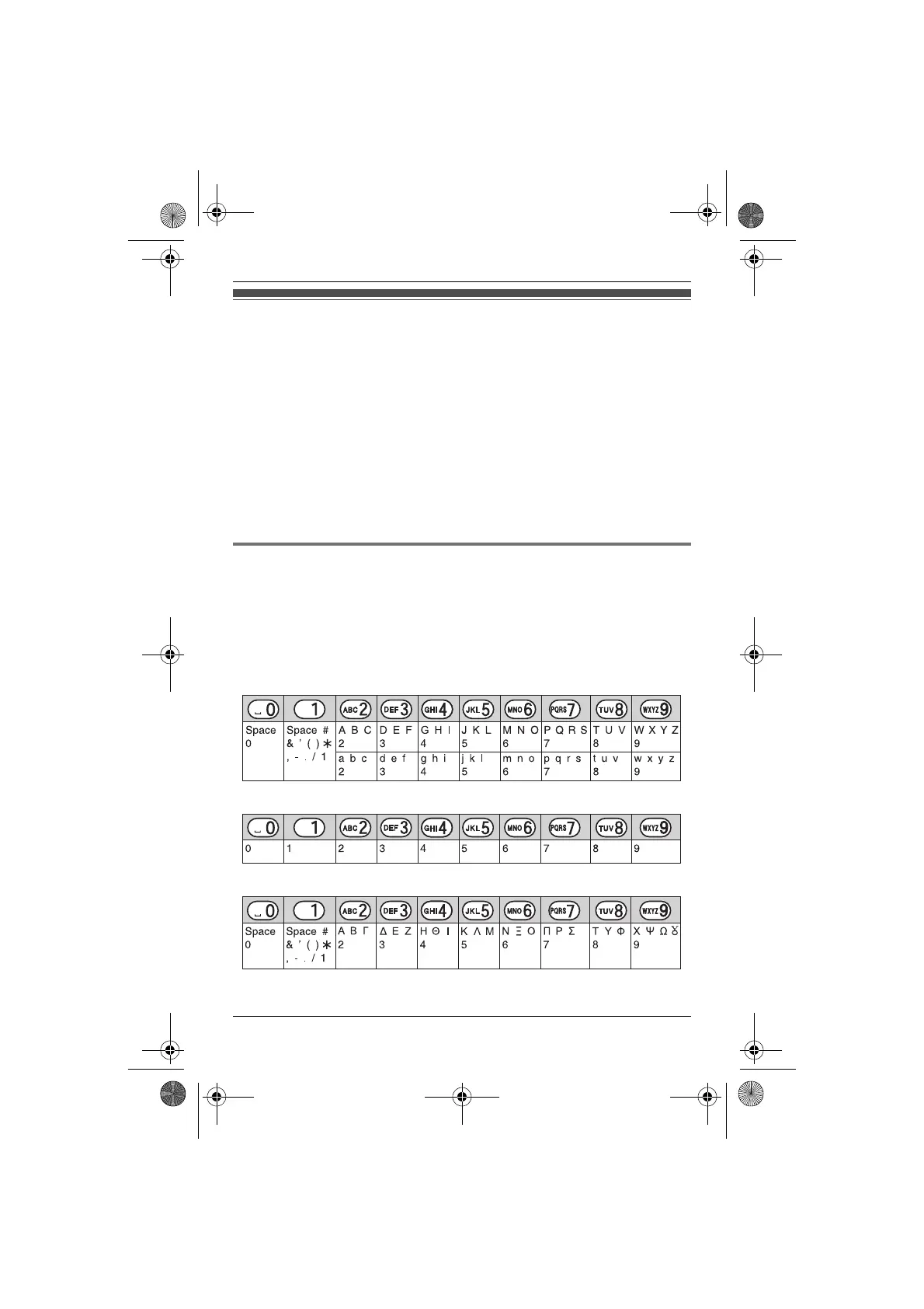 The available character entry modes are Alphabet (ABC), Numeric (0-9), Greek