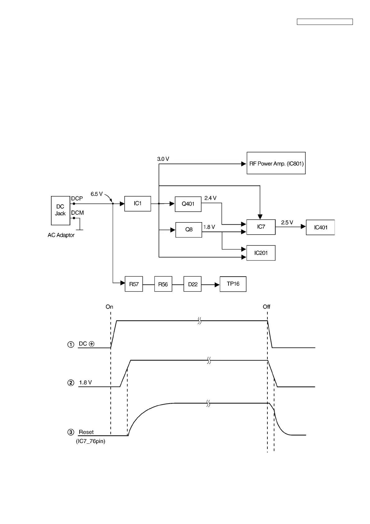 The power is supplied to the DECT BBIC, RF Module, EEPROM and Charge Contact from AC Adaptor (+6.5 V) as shown in