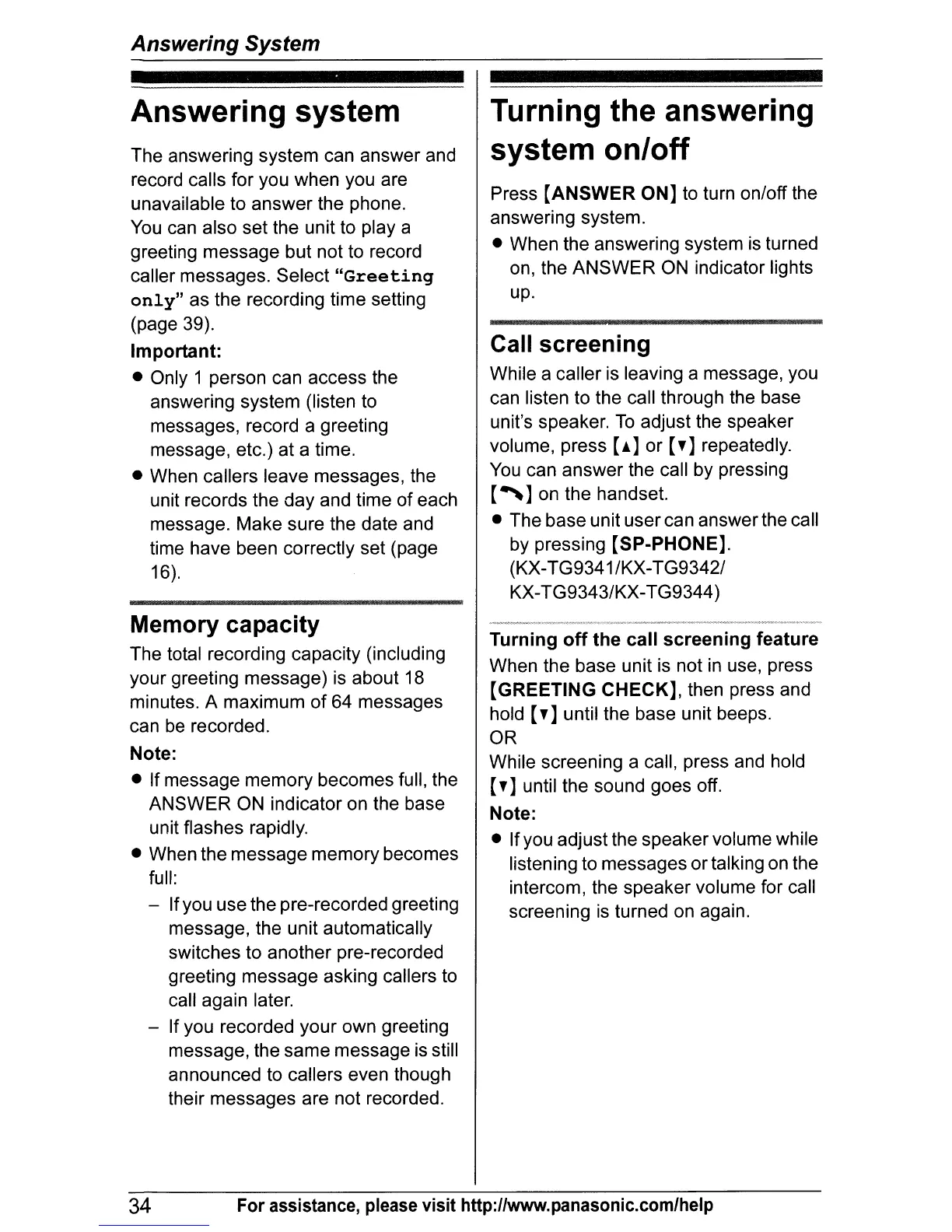 34 For assistance, please visit http://www.panasonic.com/help