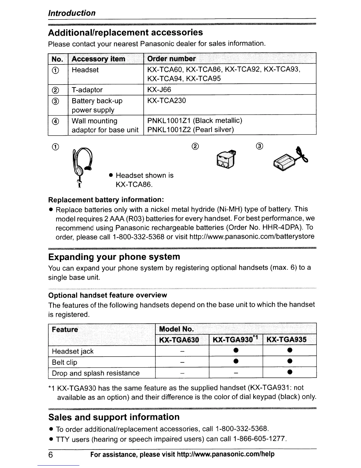 order, please call 1-800-332-5368 or visit http://www.panasonic.com/batterystore