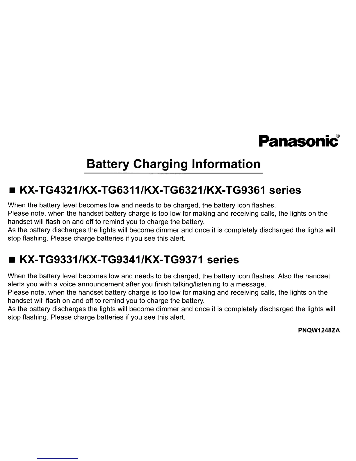 • KX-TG9331/KX-TG9341/KX-TG9371 series