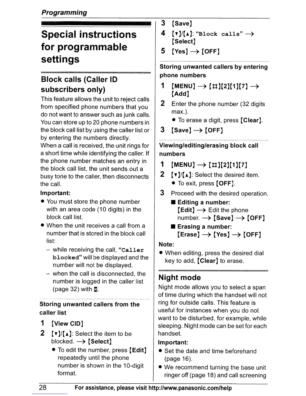 28 For assistance, please visit http://www.panasonic.com/help