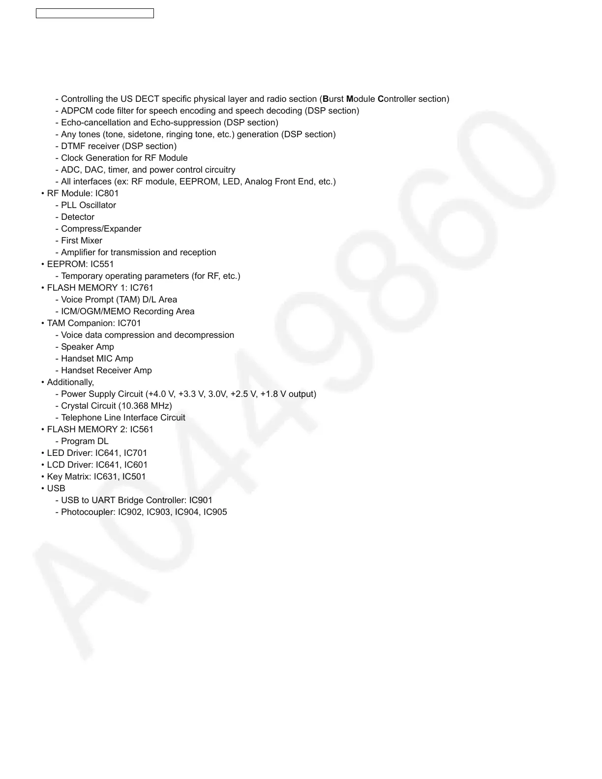 Base unit consists of the following ICs as shown in Block Diagram (Base Unit) (P.7).