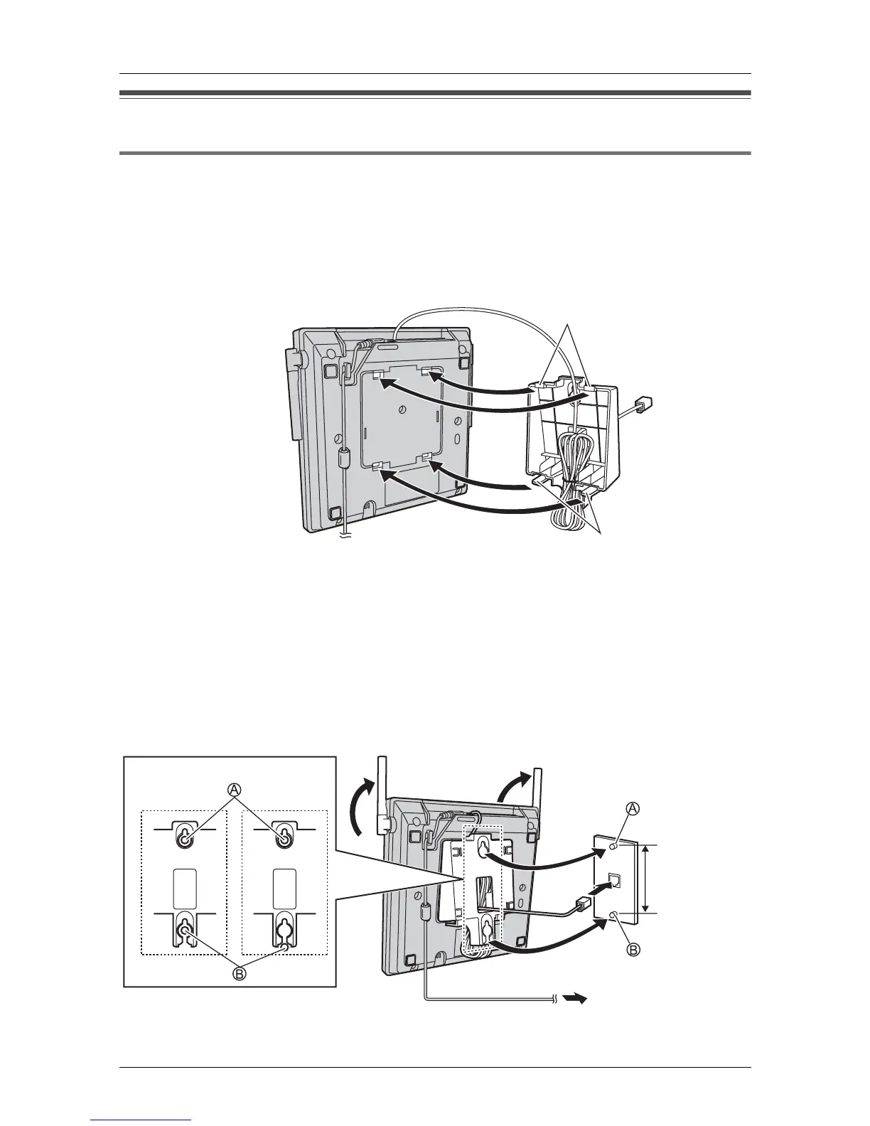 3 Connect the telephone line cord. Mount the base unit by inserting the mounting pins