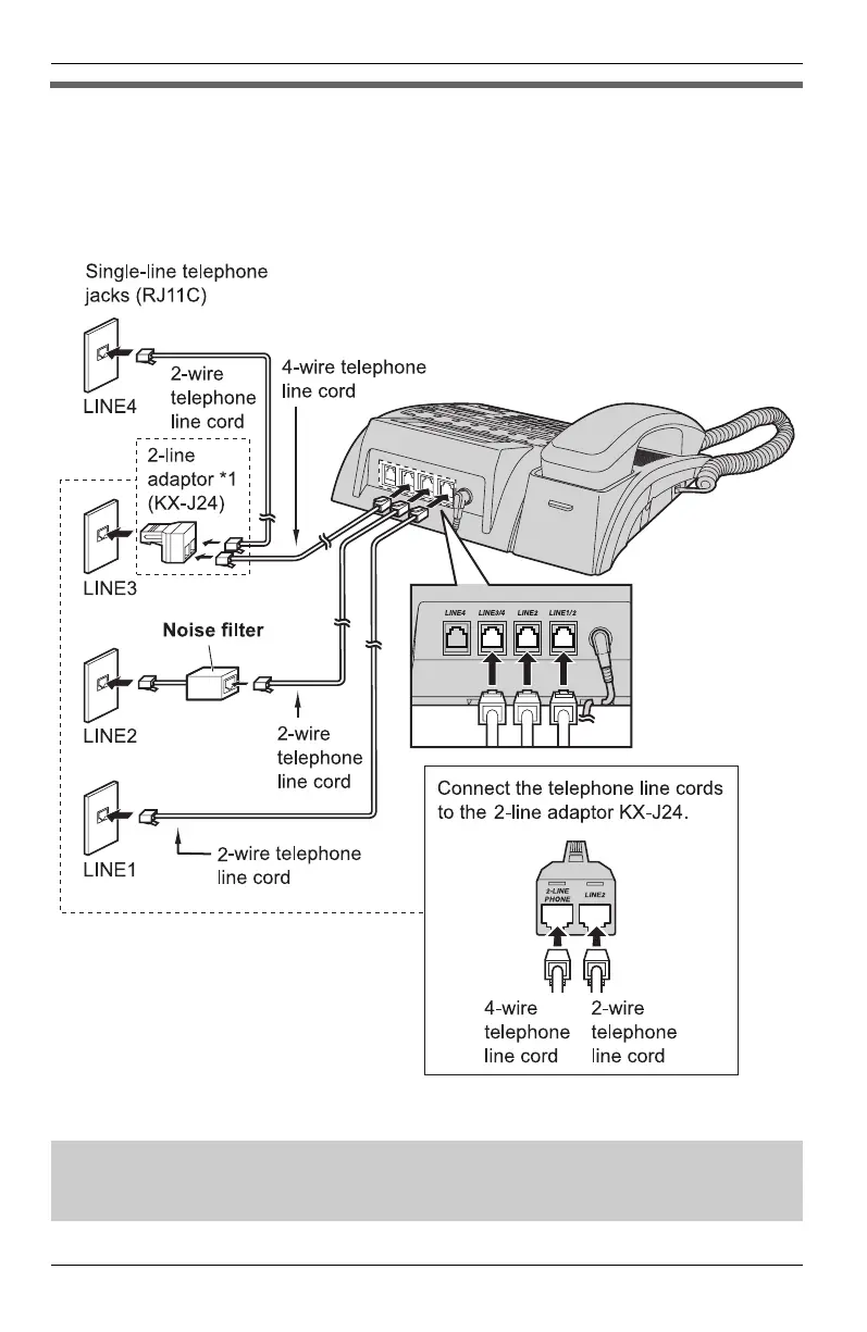 For this connection, please purchase a Panasonic 2-line adaptor KX-J24 and three 2-