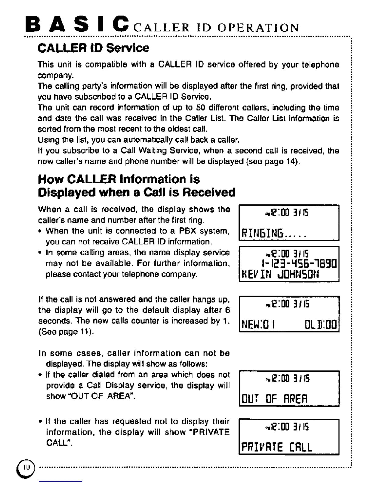 Panasonic KX-TSC7 - Basic Caller ID Operation; Caller ID Service; How Caller Information Is Displayed When a Call Is Received