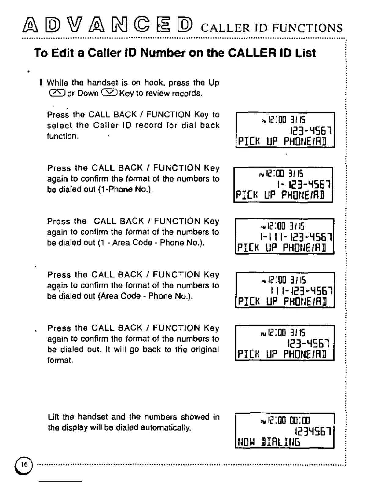 Panasonic KX-TSC7 - To Edit a Caller ID Number on the CALLER ID List