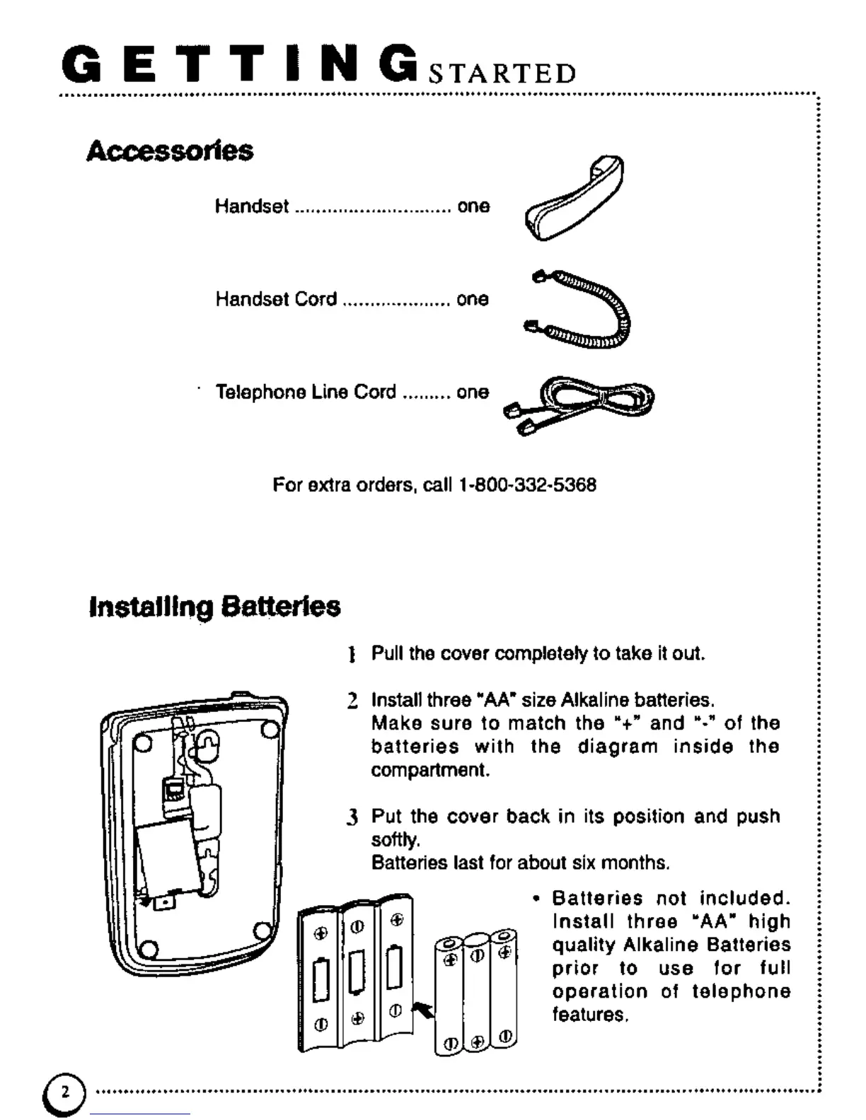 Panasonic KX-TSC7 - Getting Started; Accessories; Installing Batteries