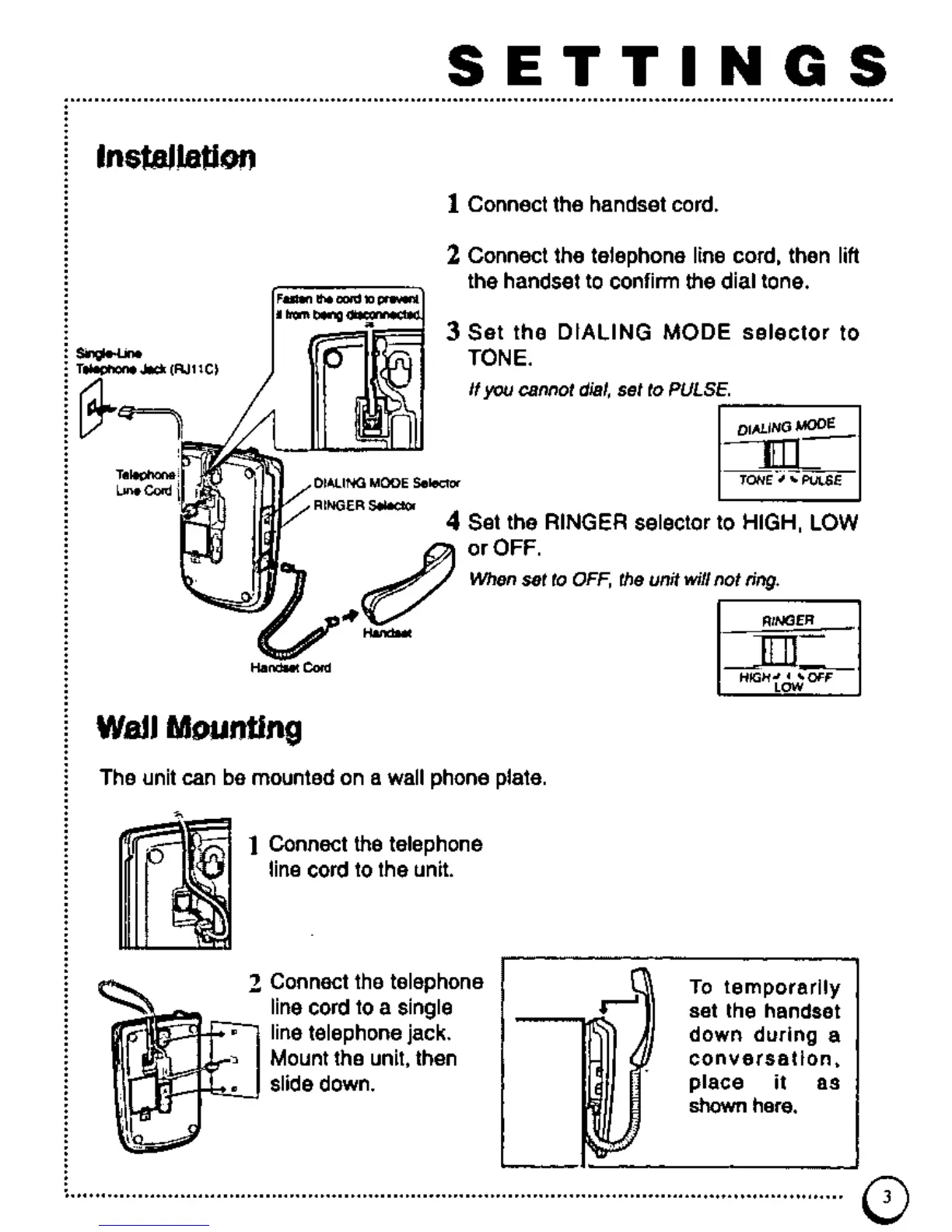 Panasonic KX-TSC7 - Settings; Installation; Wall Mounting