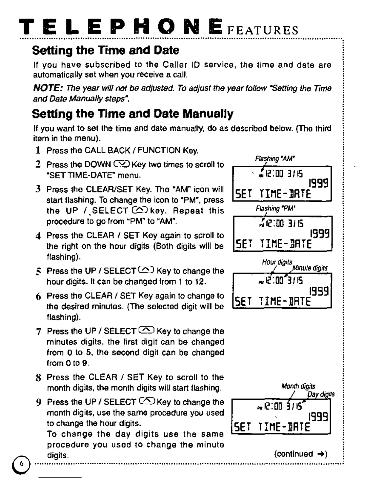 Panasonic KX-TSC7 - Setting the Time and Date; Setting the Time and Date Manually