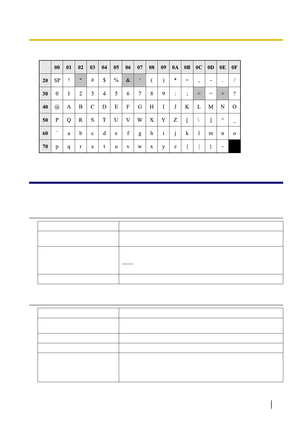 Available ASCII characters are shown on a white background in the following table: