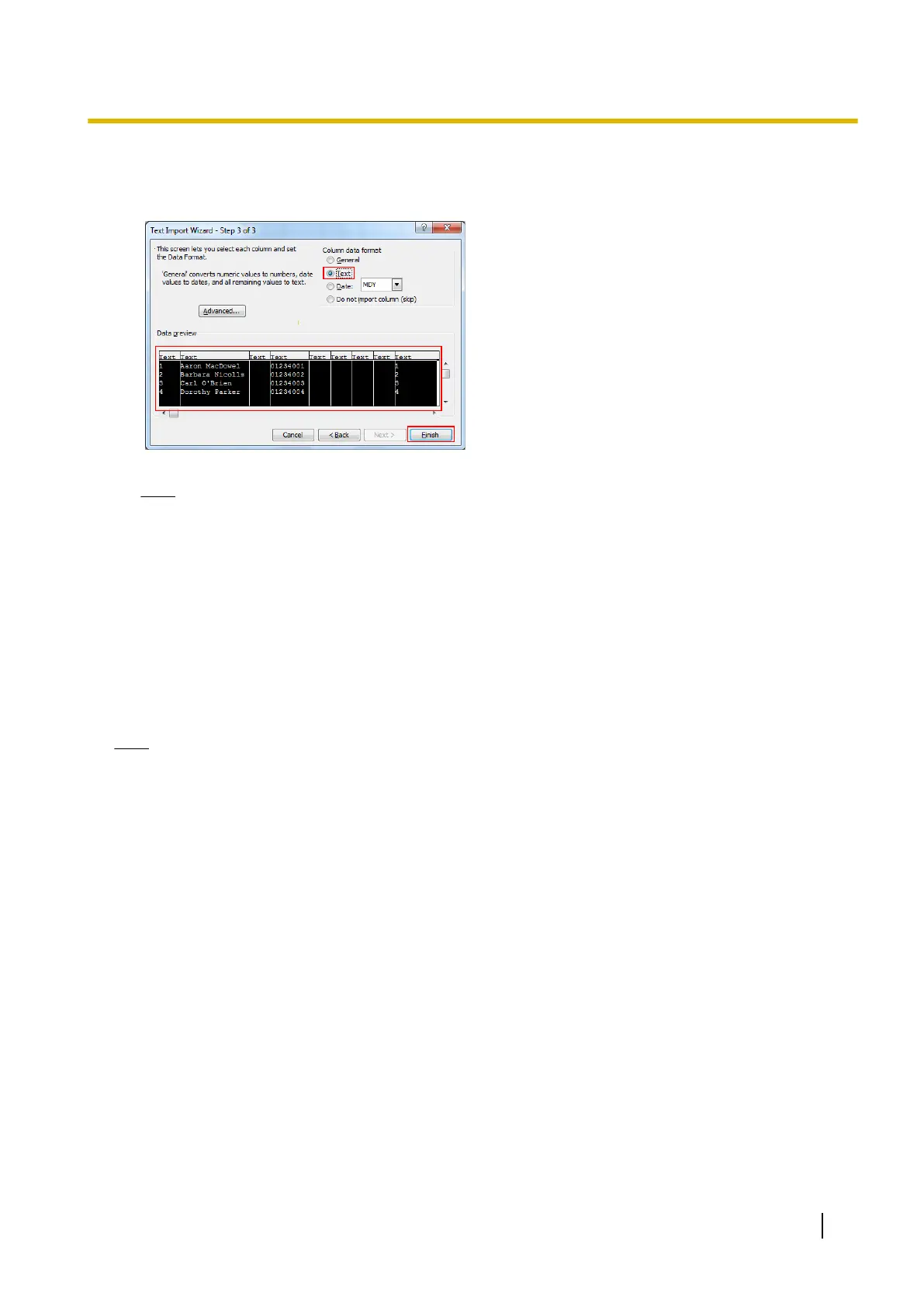 6. On the Text Import Wizard - Step 3 of 3 window, select all columns in Data preview, select Text in