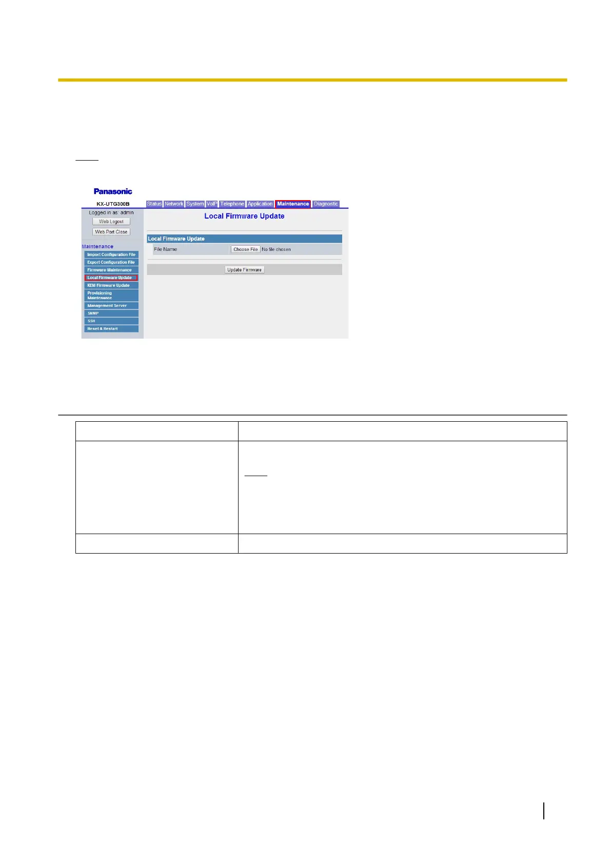 This screen allows you to manually update the firmware of the KX-UTA336 Add-on Key Module from a PC by