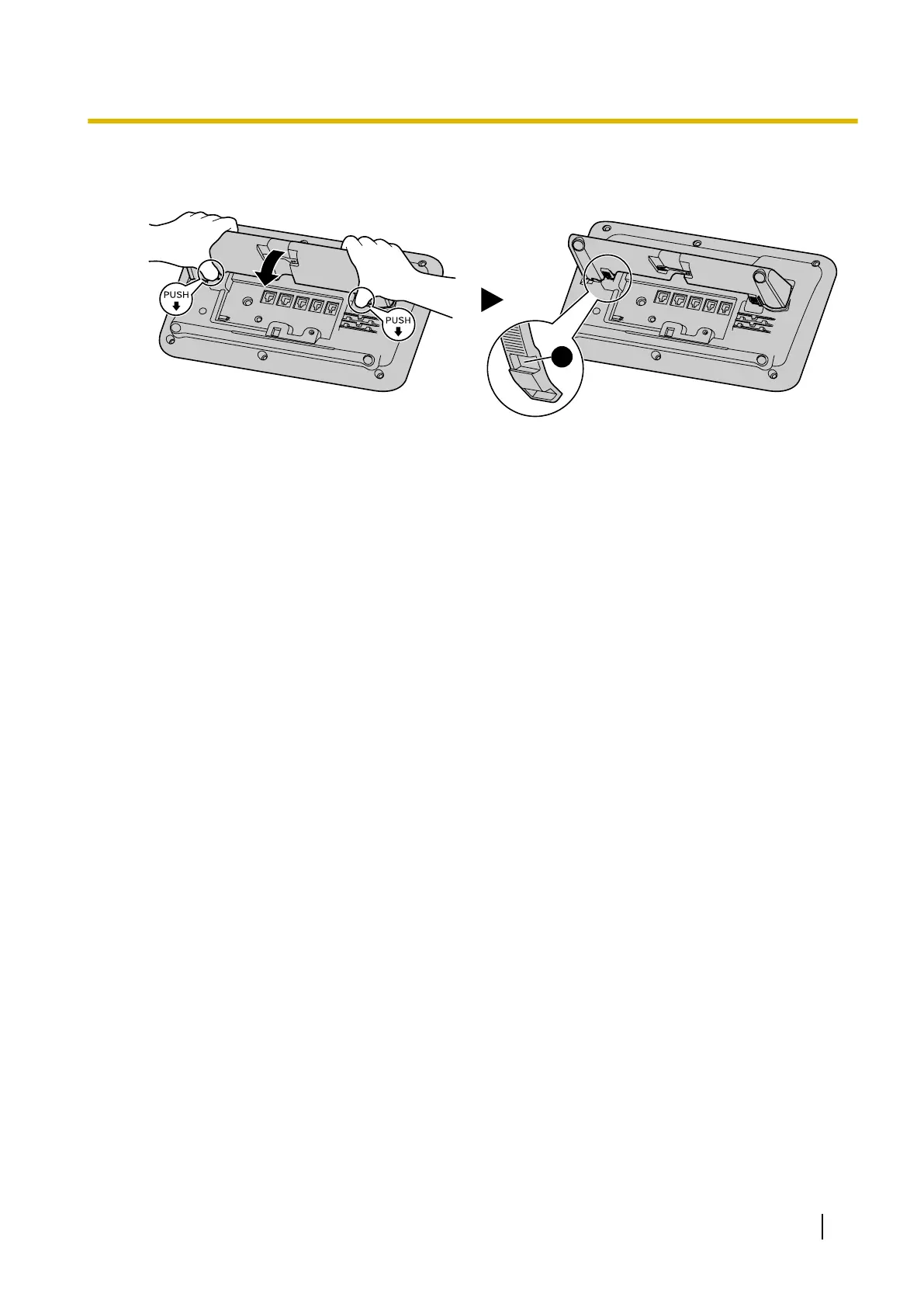 1. Tilt the stand in the direction indicated while pushing the PUSH mark with both hands as shown until it