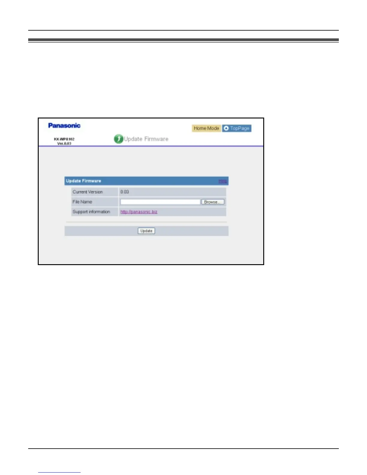 4 Enter the file name of the downloaded firmware under the “Update Firmware” heading.
