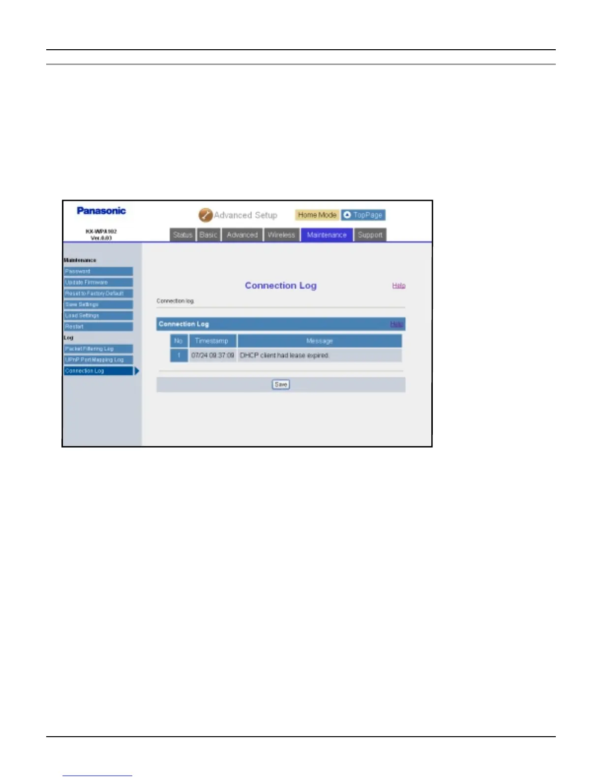 2 Click the [Maintenance] tab, then click [Connection Log].