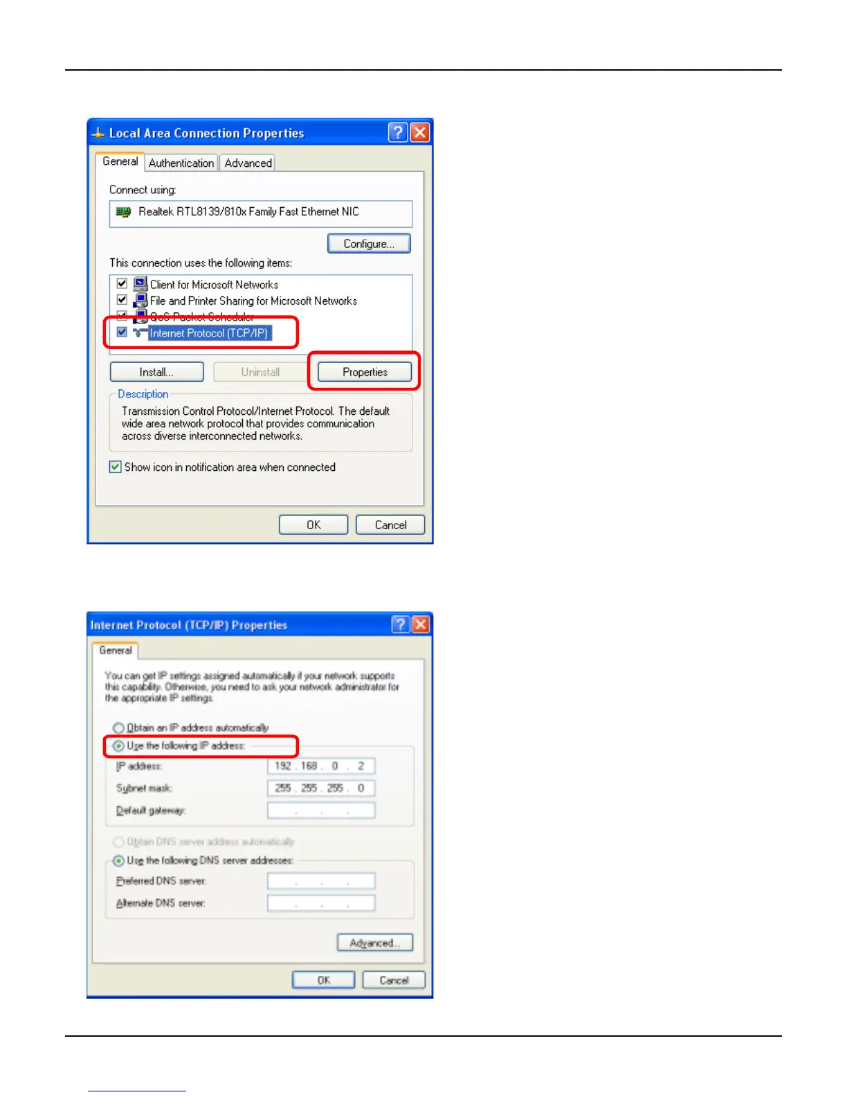 5 Select [Use the following IP address].
