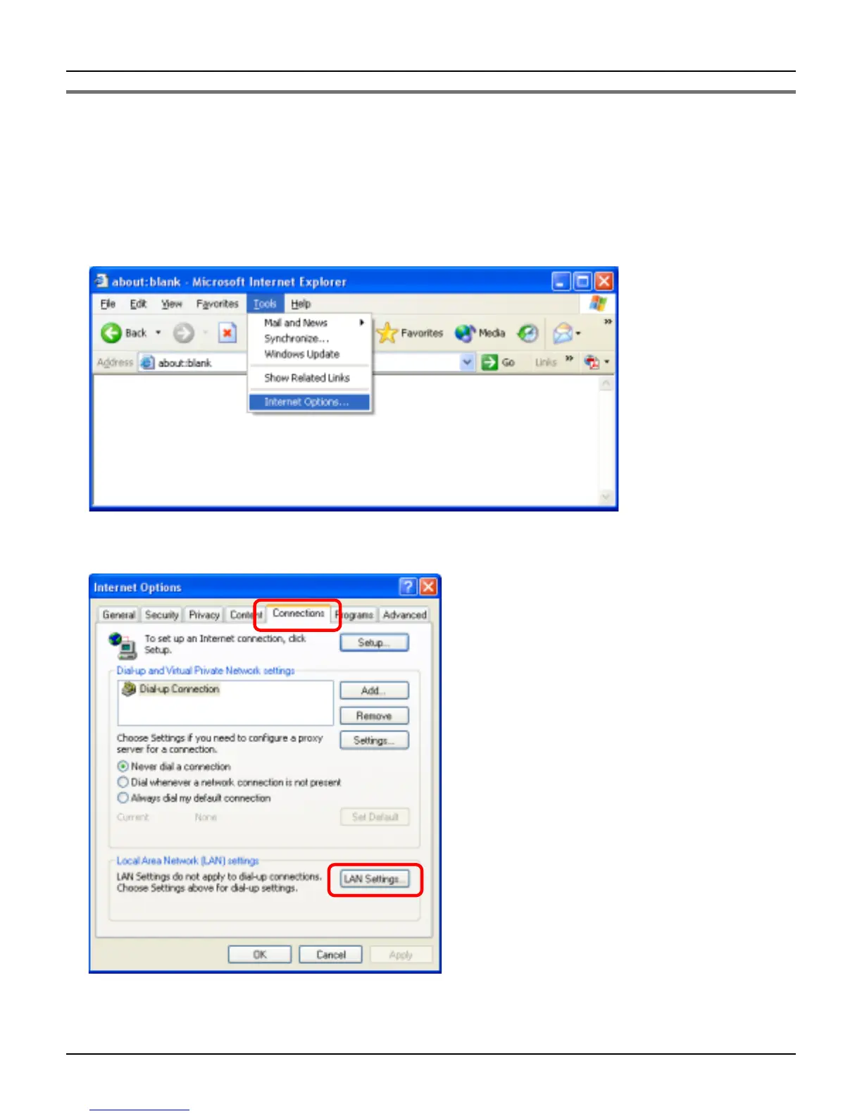 3 Click [Connections] tab, then click [LAN Settingsā¦].