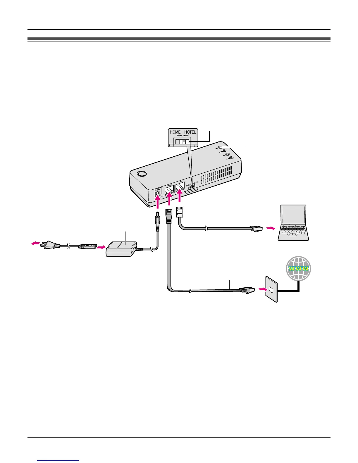 “WAN” port on the base unit and the Ethernet port (RJ45 jack) in the hotel room.