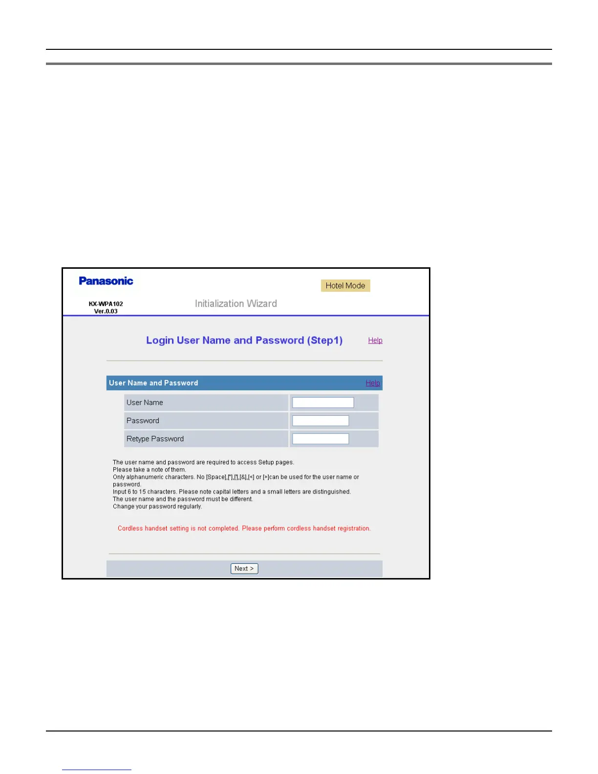 (Login User Name and Password page) is displayed.