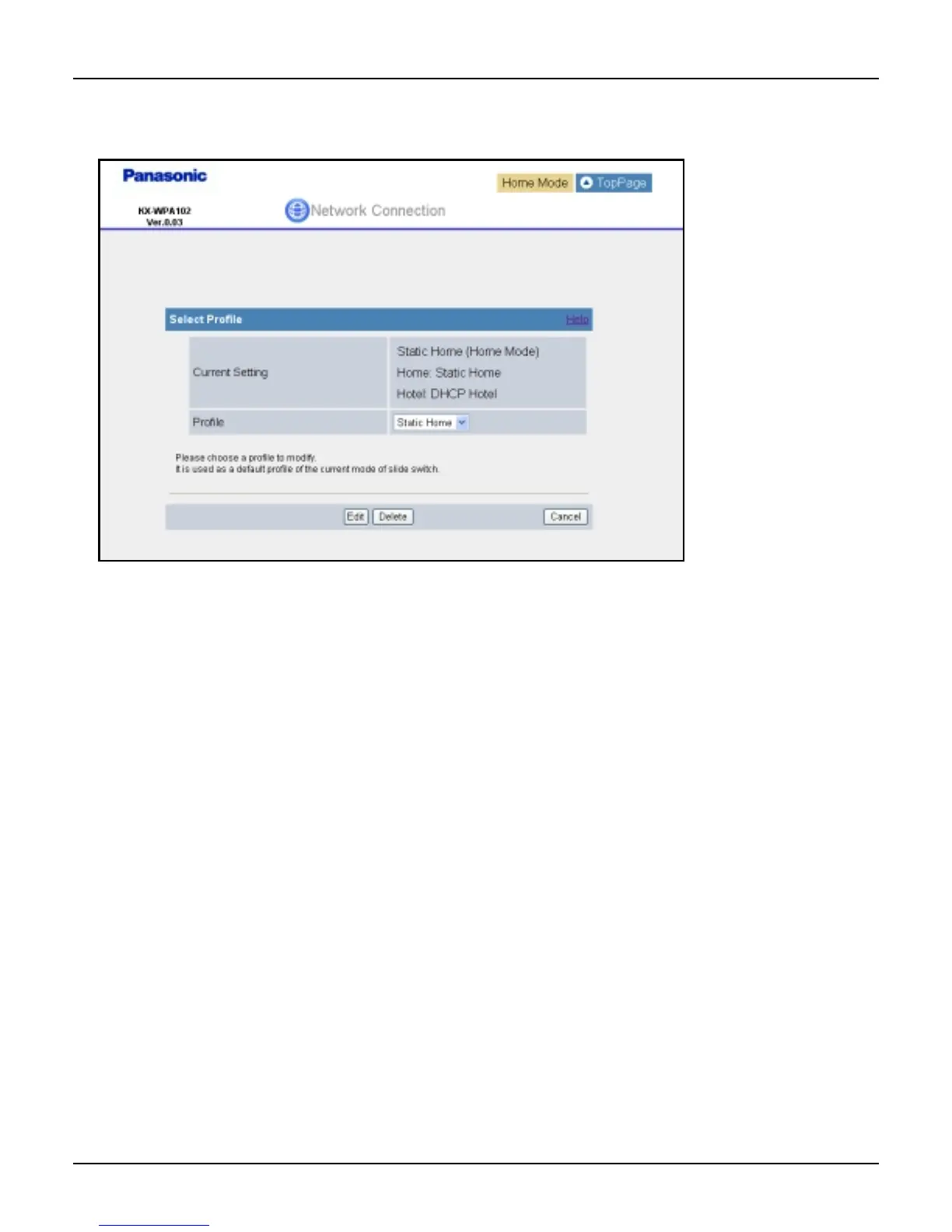 L In step 3, if you delete the profile you are currently using for HOTEL or HOME mode, the