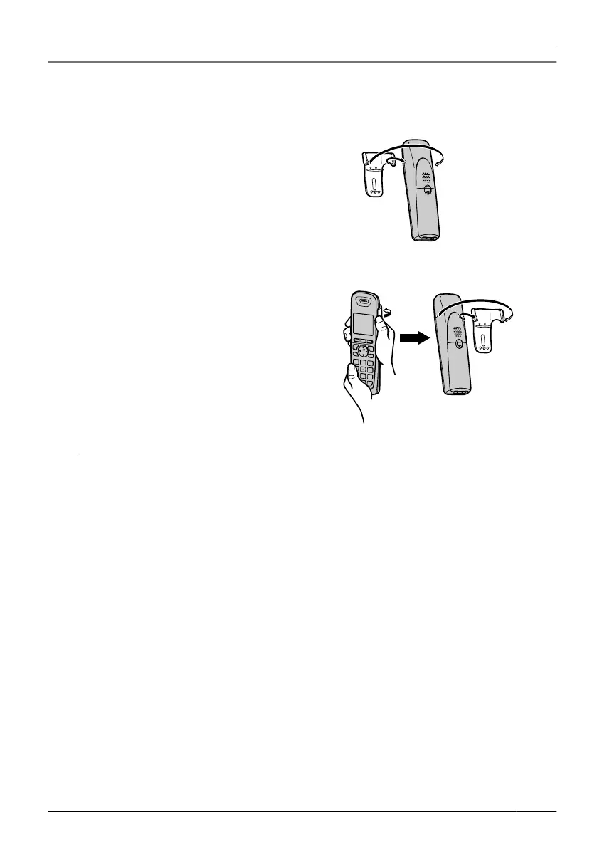 You can attach the handset to your belt by following the steps below.