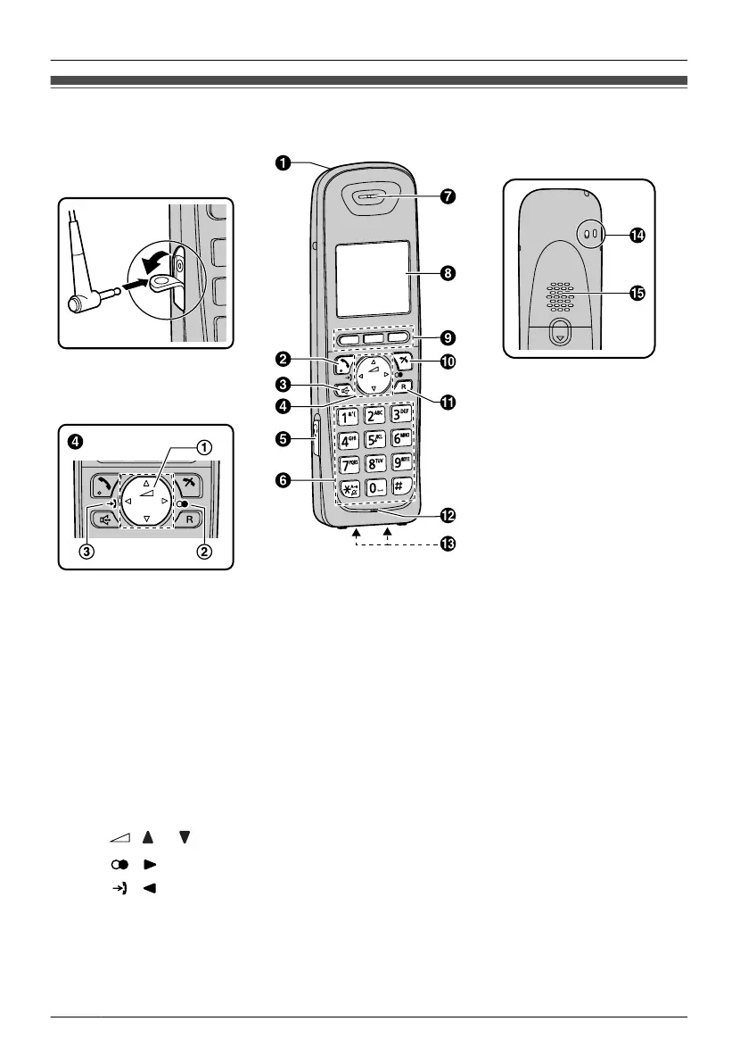 ( or : Volume): Used to adjust the receiver or speaker volume while talking.