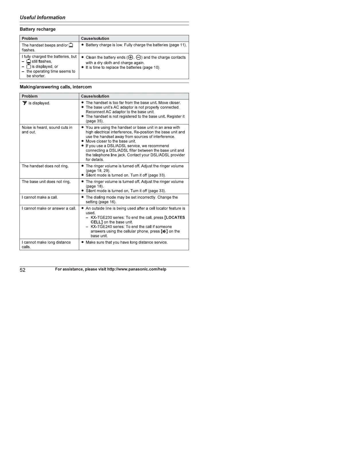 You are using the handset or base unit in an area with