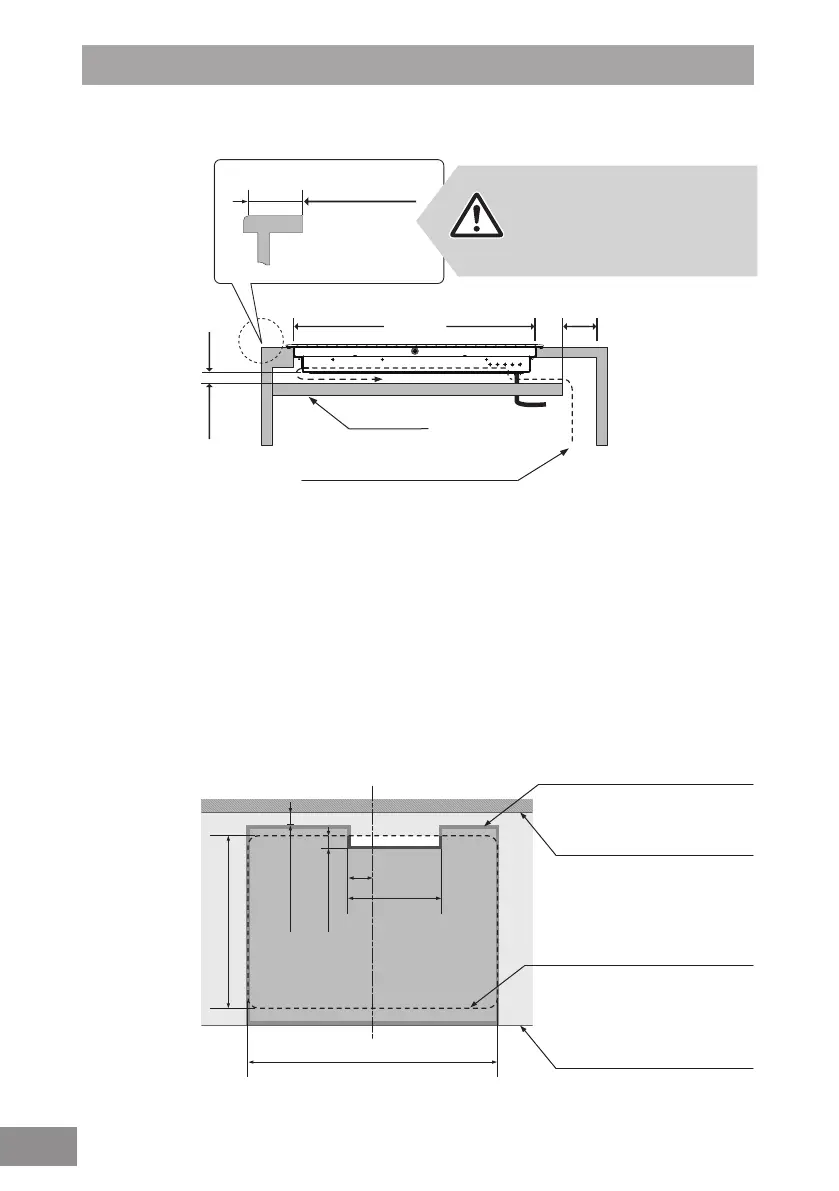 ■ Sorgen Sie für einen Mindestabstand von 20 mm unter der Unterseite des