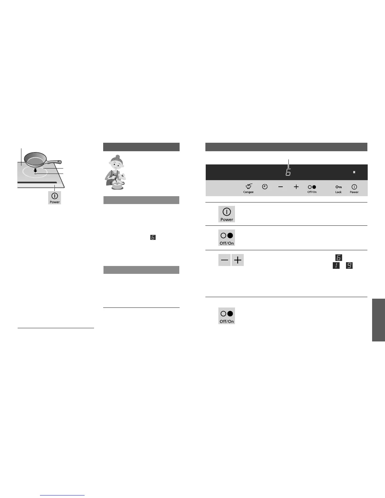 of cookware and adjusts the heat level.