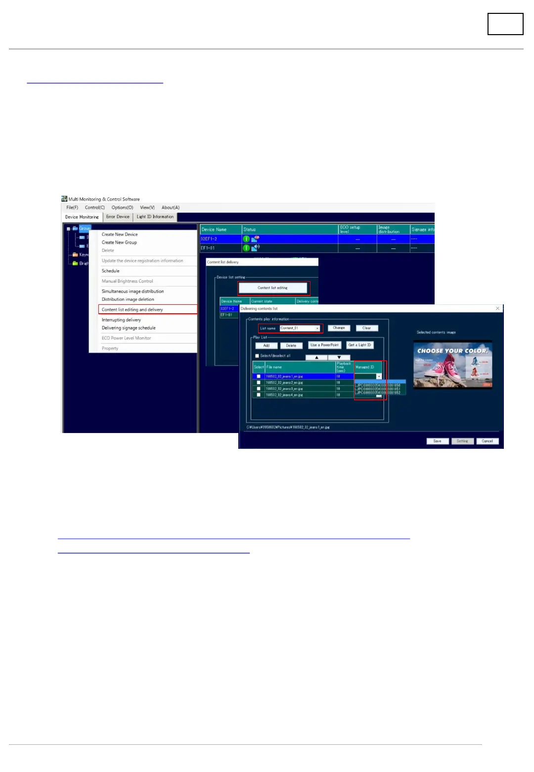 (2) Click [Content list editing and delivery], and the following message will appear.