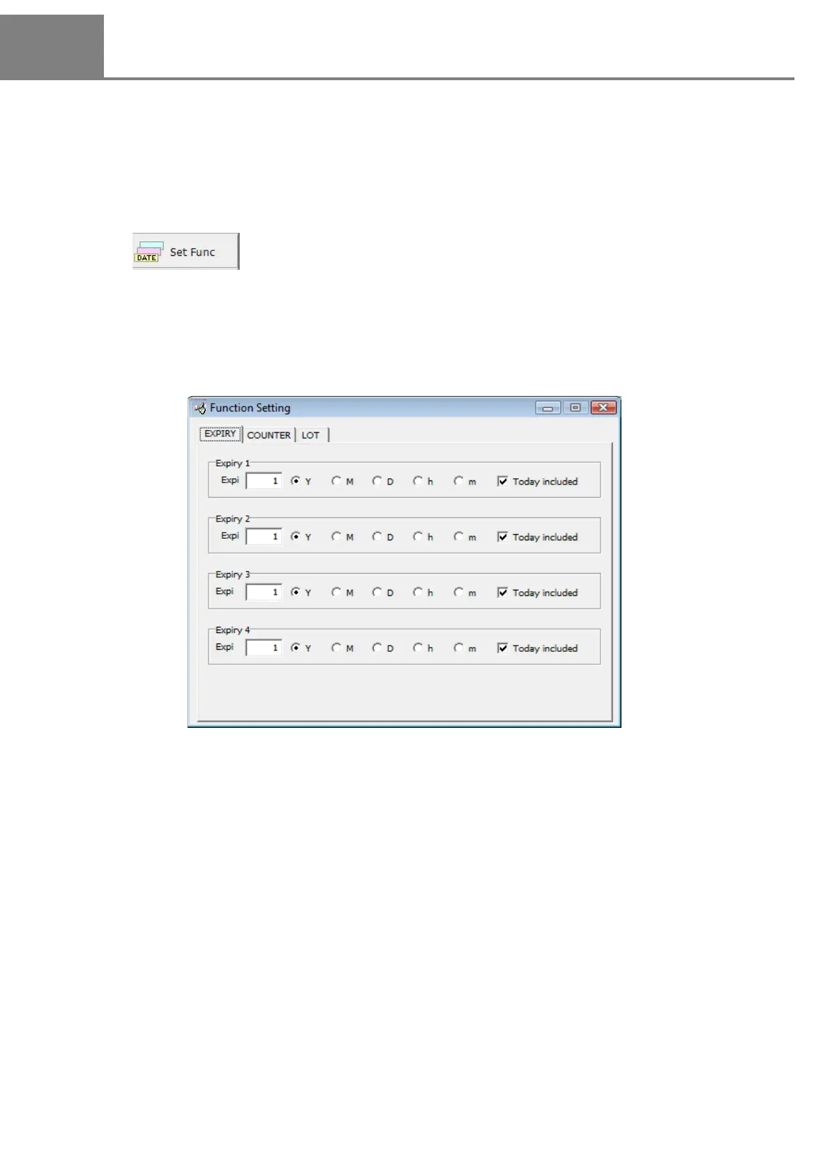 In this dialog box, there are three tabs, “EXPIRY”, “COUNTER”, and “LOT” as shown in the following figure